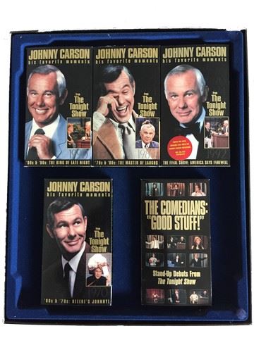Jonny Carson Collection Limited Video Edition (1970's-90's)- This includes 5 VHS tapes "His Favorite Moments, and The Final Episode", and a cartoon drawing.(18x15)