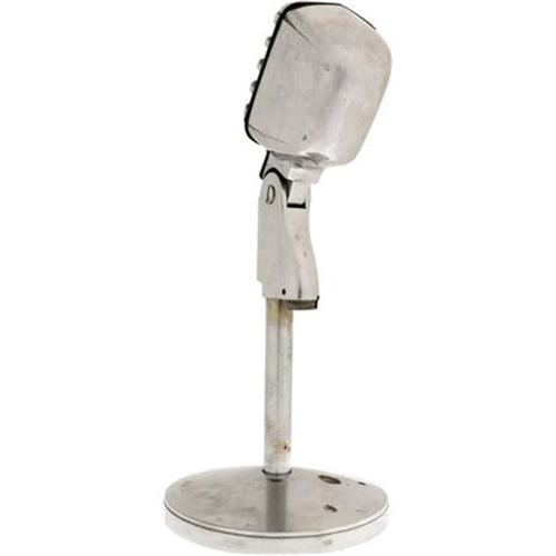 <B>Johnny Carson Microphone from the Tonight Show, from the "Art Fern" Skits.</B></I> Remember Johnny Carson's "Art Fern" and his "Teatime Movie" skits on the <I>Tonight Show</B></I>? He was the mustached, nasal-voiced TV host, showing atrocious films (such as <I>Dracula Gets Bombed on a Wino</B></I>), rattling off cast names (usually ending with an animal act such as "Pellets the Nervous Rabbit"), advertising bottom-of-the-barrel stores with his stick pointer ("How do you get there?"), and leering at the blond bombshell "Miss Teatime Matinee Movie" (Carol Wayne and later Teresa Ganzel). This Electro-Voice Mercury model aluminum microphone was used in those racy, rapid-fire "Mighty Carson Art Players" episodes. It measures 10.5" -tall on a 5"-wide base. "Electro-Voice, Inc, Buchanan, Mich." is stamped onto the bottom of the base, along with "Model 423 A" and "Made in United States of America." There are also some markings under the base in black marker. Please note this is not Carson's desk microphone (sold in a previous auction). The "Art Fern" microphone is a relic from one of the best-remembered alter-egos of television's all-time King of Comedy, and is in Excellent condition.<I>Accompanied by LOA from LA Prop & Wardrobe Company.</B></I><BR><BR><b>Shipping:</b> Miscellaneous Collectibles, Larg (<a target="_blank" href="http://www.heritageauctions.com/common/shipping.php">view shipping information</a>)