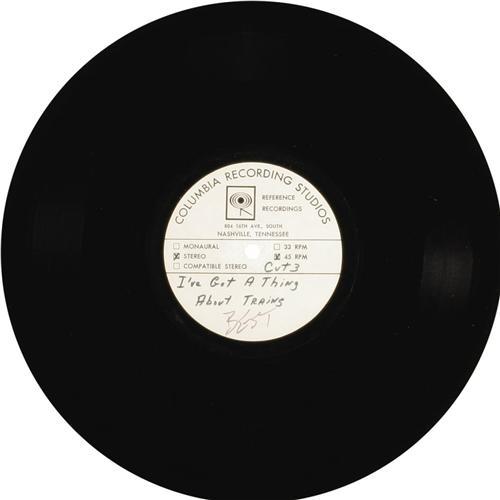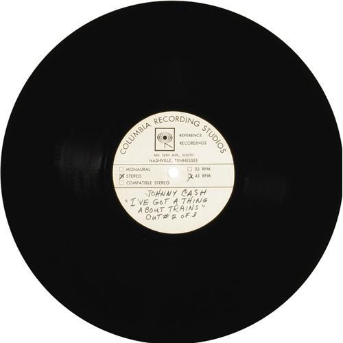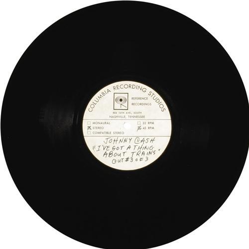 <B>Johnny Cash "I've Got A Thing About Trains" Stereo 10" 45 rpm Acetate Group of 3 -- Columbia (1960s).</B></I> Three different takes of the song, including one copy marked "Best". But you can judge for yourself! Condition NM 8 (all three). <I>From the GRT Collection</B></I>