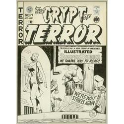 Johnny Craig - Original Cover Art for the Crypt of Terror #17 (EC, 1950). This is one of the most historic pieces of art offered in this sale. It is arguably the first horror cover produced by EC. The last two issues of War Against Crime and Crime Patrol are certainly EC horror books, but Gaines still hedged his bet. They remained crime comics, if only in title. But with Crypt of Terror #17 and Vault of Horror #12, Gaines took the plunge. He committed to publishing a line of horror-themed comics, and comic book history took a dramatic turn. EC's graphically violent covers and stories sold very well. Of course this bred myriad imitators, all trying to out-do one another in the bad taste category. Ultimately, psychologists, social reformers and Senate hearings put a stake in the heart of Bill Gaines' horror-based empire. This cover is one of Craig's finer efforts. The detail is exquisite, particularly the alley cat foraging for it's dinner. The art is in exceptional condition measuring 13.5" x 19". All of the type, including the logo, is hand drawn. Significant and masterfully executed, this piece is a must for the serious EC collector. Important notice: We expect to be auctioning lots at the rate of 200-250 per hour. Sometimes eBay Premier live bid software cannot keep up with that pace, so we strongly recommend that you place a realistic proxy bid now as insurance to avoid disappointment. Also please note that all Heritage/CAA lots purchased through eBay Premier carry a 20% Buyer's Premium.