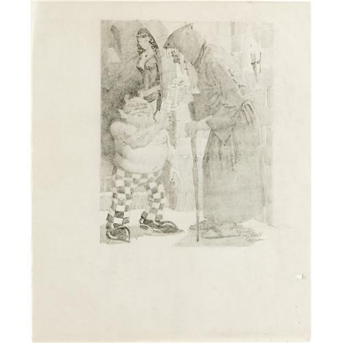 <B>Johnny Craig - Vault Keeper and the Checkered Demon Original Art (undated).</B></I> That irrepressible Underground star in the checkered britches known as the Checkered Demon raises a toast with another comic legend, the Vault Keeper, in this illustration by Johnny Craig. Rendered in graphite on vellum paper, the image area measures 8.5" x 11", and the condition is Very Good. Signed by Johnny Craig at the lower right.<BR><BR><b>Shipping:</b> Small Flat (<a target="_blank" href="http://www.heritageauctions.com/common/shipping.php">view shipping information</a>)