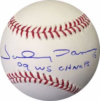On December 20, 2005, Johnny Damon signed a four-year, $52 million contract with the New York Yankees. On July 27, 2009, Damon hit his 200th career home run against the Tampa Bay Rays. For the 2009 season, he batted .282and was 4th in the league in runs scored (107).Johnny Damon hit a home run in Games 3 and 4 of the 2009 ALCS, defeating the Los Angeles Angels of Anaheim in 6 games. When the Yankees went on to play the Philadelphia Phillies in the 2009 World Series, Damon got credit for stealing two bases in one play when the Phillies defense was shifted against batter Mark Teixeira. Damon got his second championship ring as the Yankees would eventually defeat the Phillies in 6 games. Johnny Damon has hand signed this Official Major League Baseball with 09 WS Champs inscription. Private Signing 8/4/2013 in Rosemont, IL. MAB Hologram and Certificate of Authenticity from Athlon Sports.