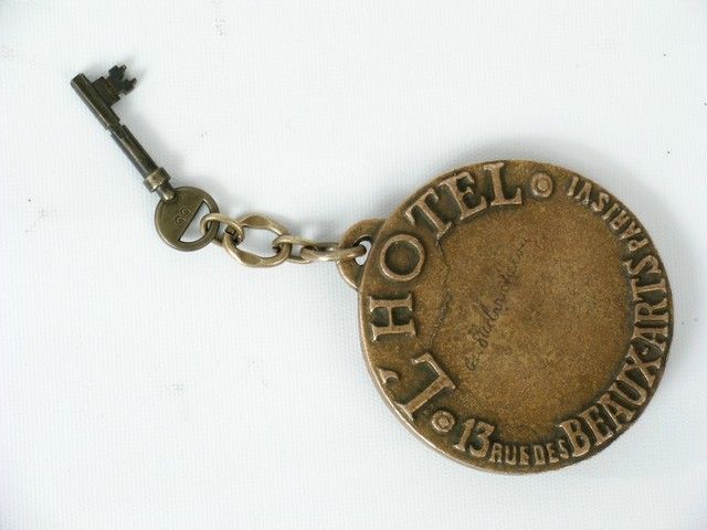 Johnny Depp is known to have frequented the Hôtel Plaza Athénée in Paris, but it is not the only hotel he liked to stay in. This is the actual hotel key that Johnny Depp used when he would stay at the legendary L’Hotel at 13 Rue des Beaux Arts, 75006, Paris, France. This is the exclusive hotel where many famous luminaries, celebrities, writers and actors stayed through the years, and where Oscar Wilde lived and died. Besides the actual cast brass room key, it includes the rare, famous L’Hotel extra large and much sought after heavy Oscar Wilde cast brass circular fob that is attached to all the keys to keep them “in house”. The brass key has "55" etched into it. Fob is approx 4" diameter, and key is approx 2.5" long. Comes with a Letter of Provenance from the family who obtained it, who were close friends of Johnny Depp.