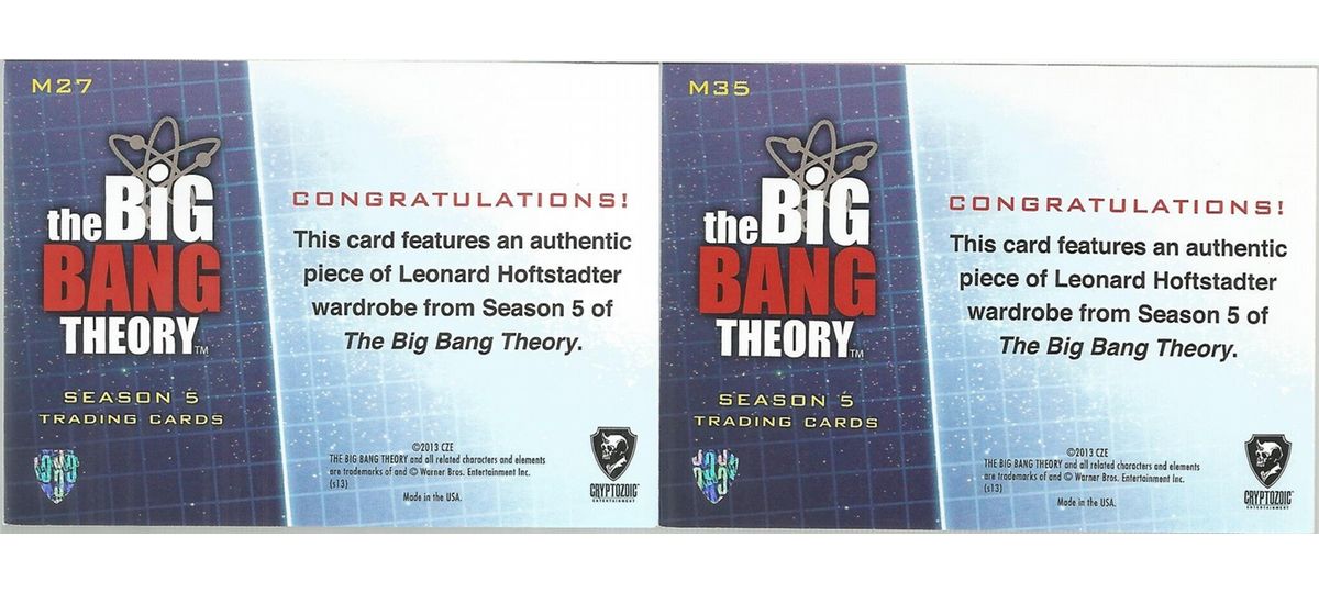 Group of TWO rare wardrobe chase cards for star Johnny Galecki including his bathrobe