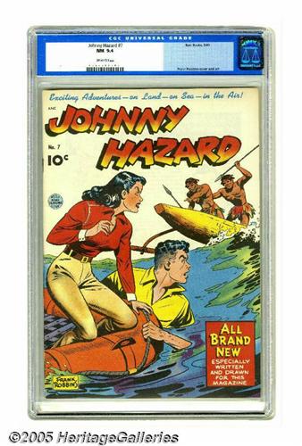 <B>Johnny Hazard #7 (King Features Syndicate, 1949) CGC NM 9.4 Off-white pages.</B></I> New stories, not reprints. Overstreet 2005 NM- 9.2 value = $110. CGC census 3/05: 1 in 9.4, none higher.