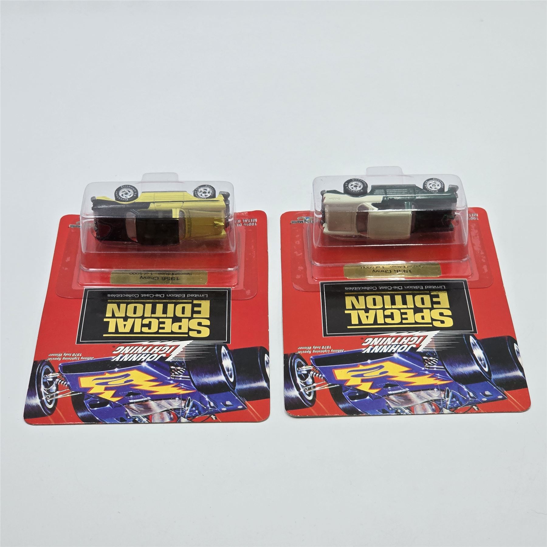 Johnny Lightning Special Edition 55 Chevy pair, includes - Green with white and yellow with black