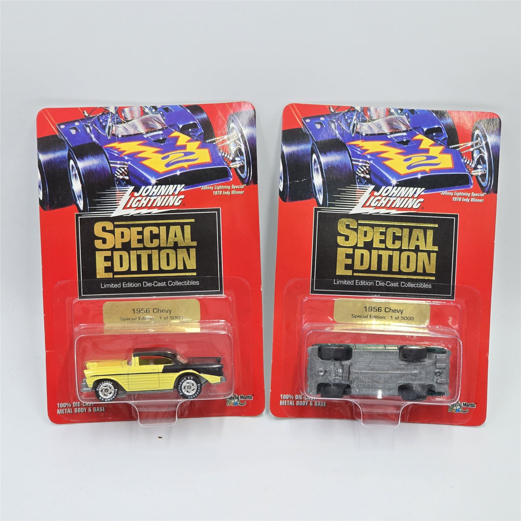 Johnny Lightning Special Edition 55 Chevy pair, includes - Green with white and yellow with black