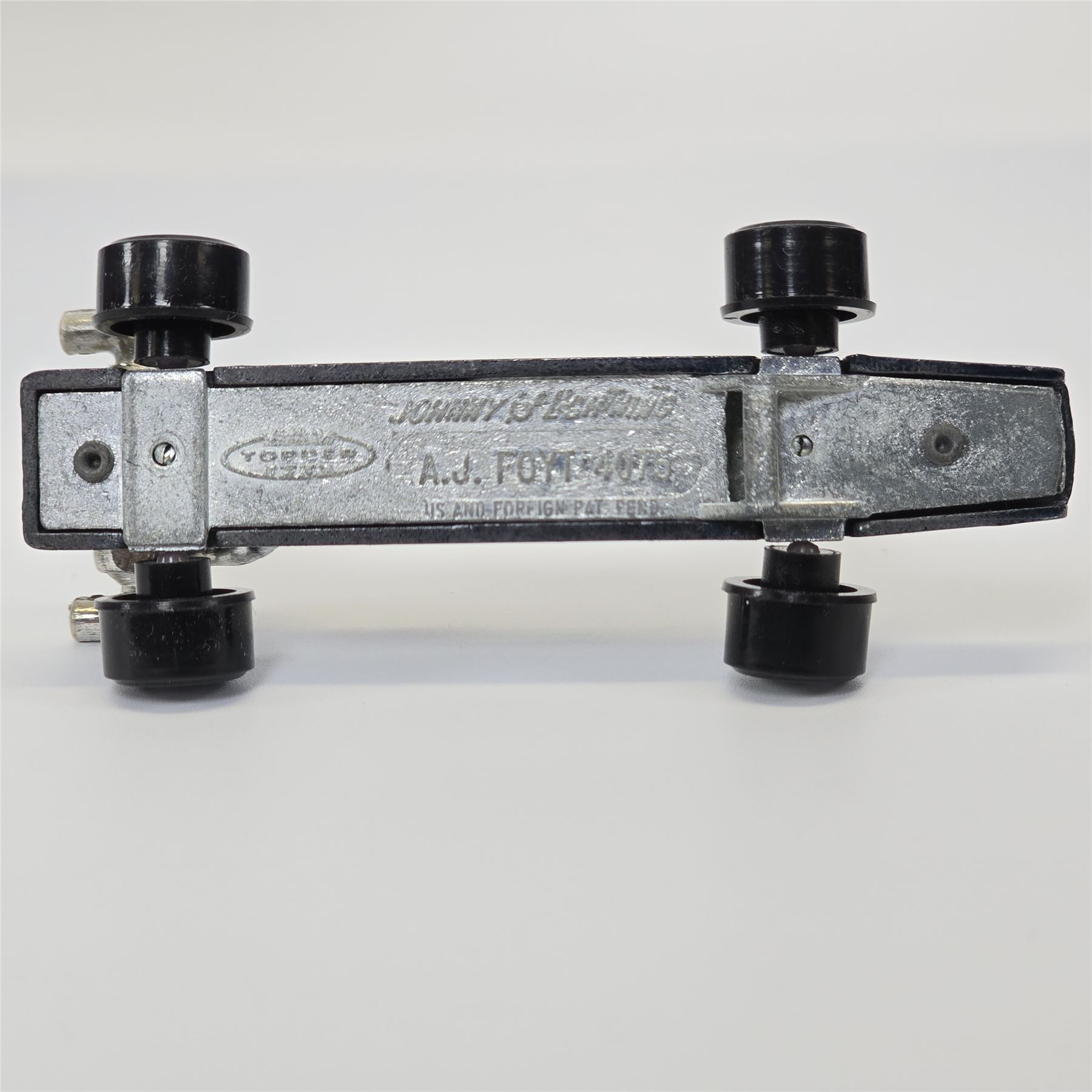 Nice condition overall with a few small nicks. Has some toning throughout. Glass is crack free. Decals intact. Motors intact. Wheel chrome is clean. Base is lightly tarnished.