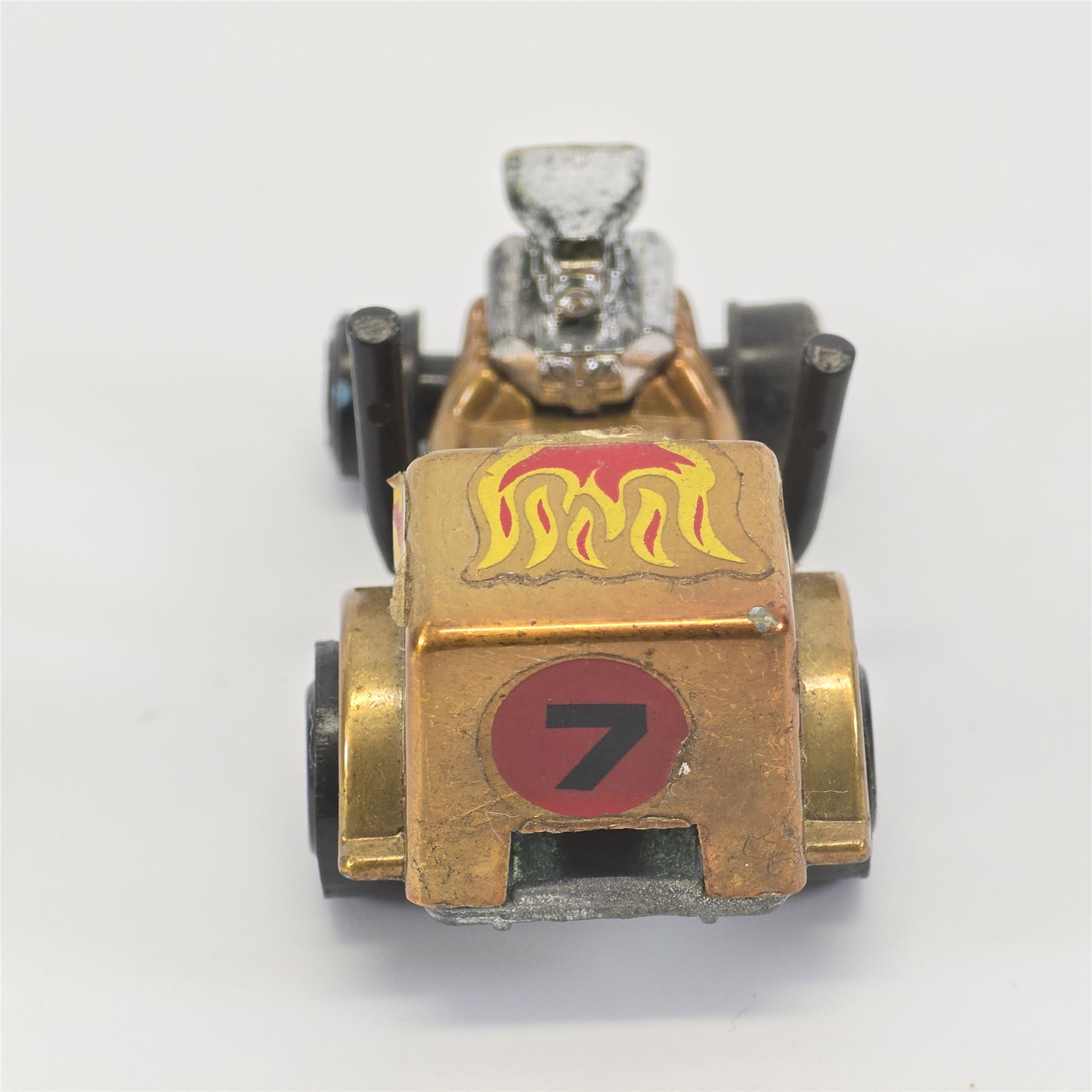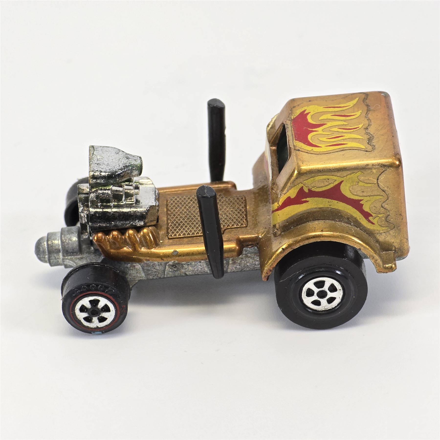 Nice condition overall with some light wear. Has some toning throughout. Glass is crack free. Motor is intact. Wing is missing which is very typical for this casting. Wheel chrome is clean. Base is lightly tarnished.