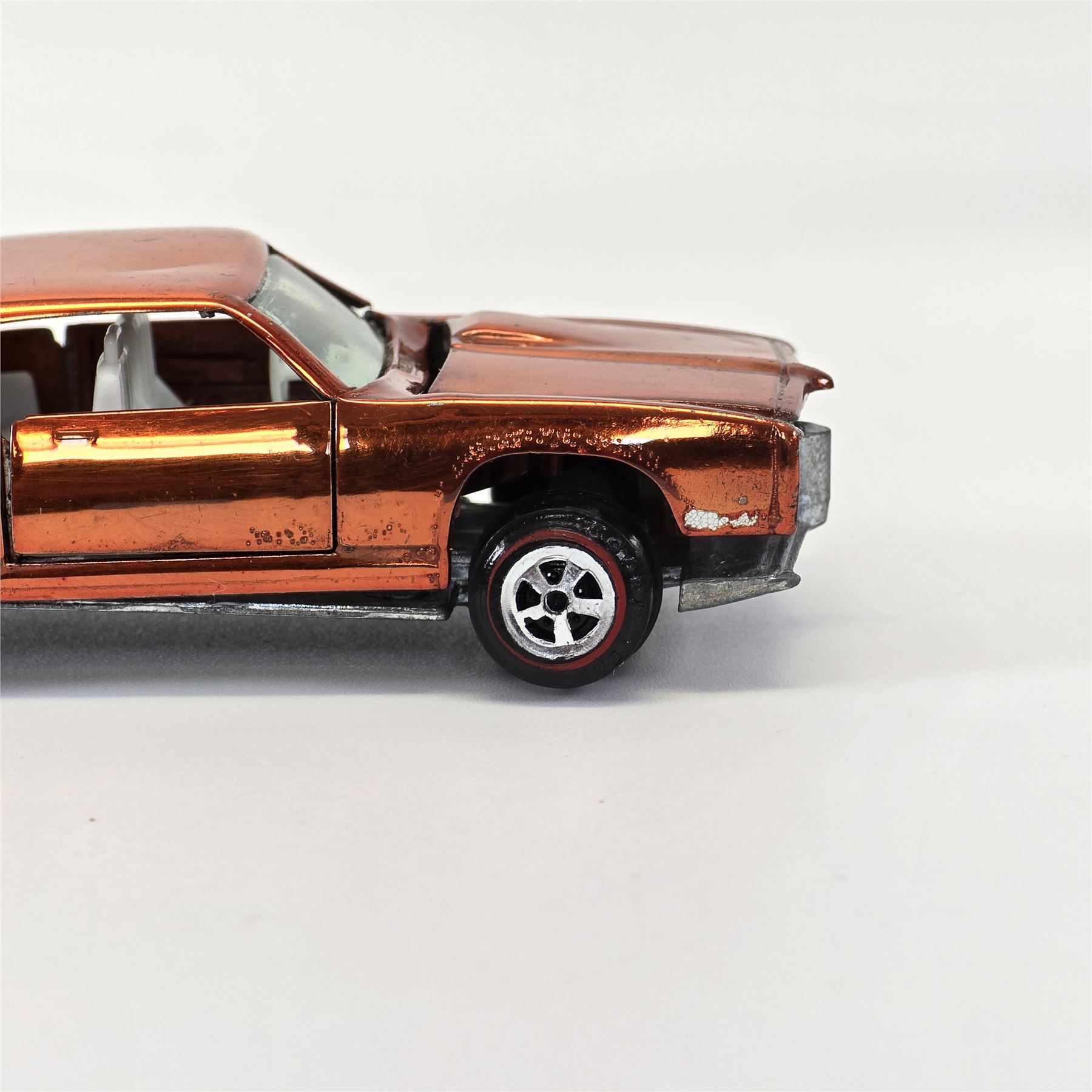 Nice condition overall with some light wear throughout. Has some slight toning throughout. Glass is crack free. Hood works properly. Hood cowl is bent down some. Doors work properly. Wheel chrome is clean. Base is lightly tarnished.& nbsp;