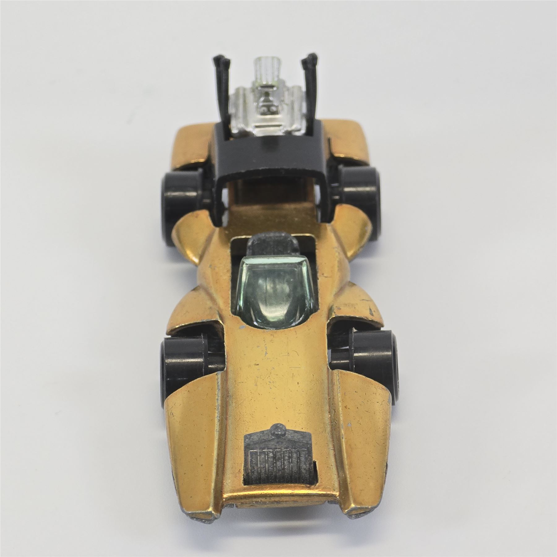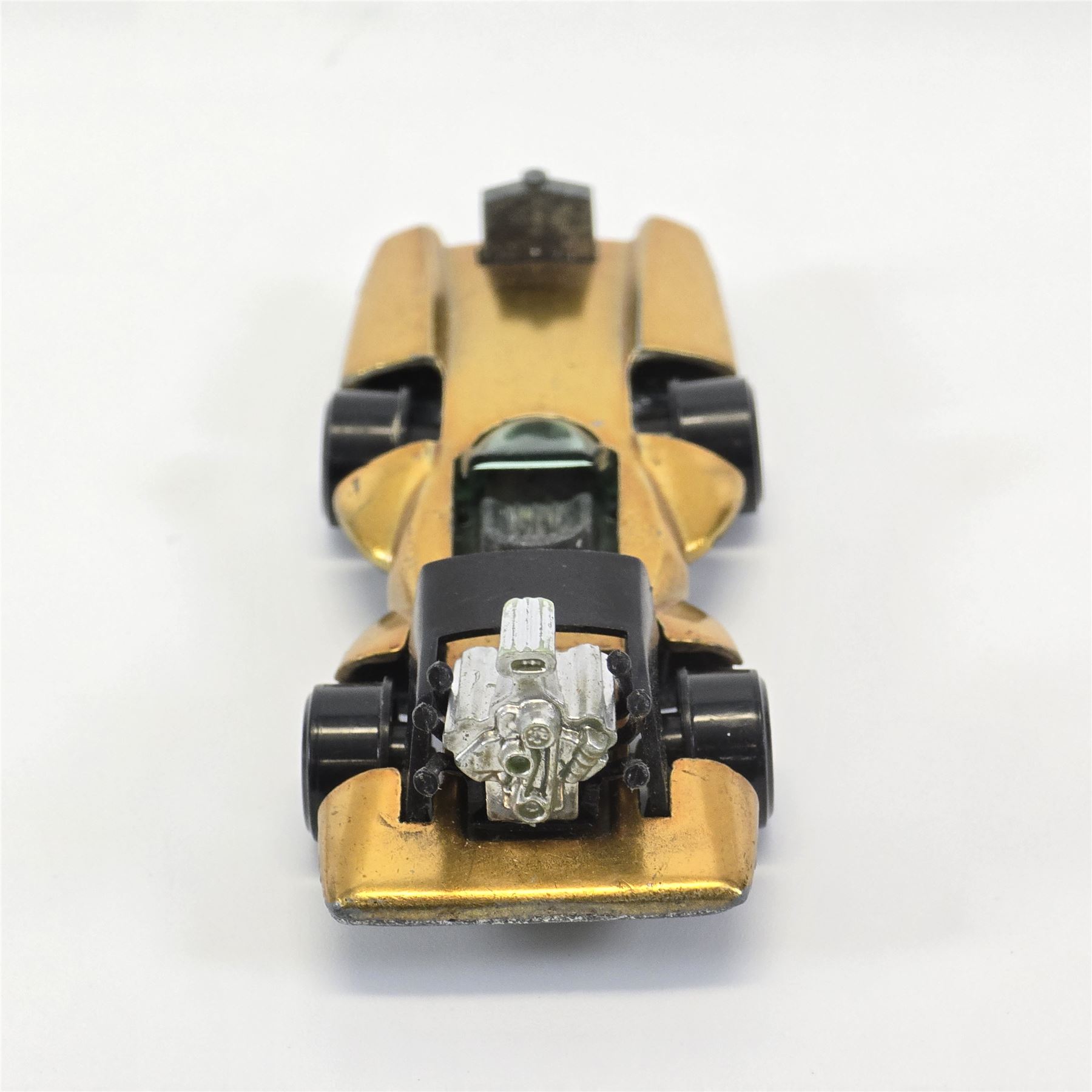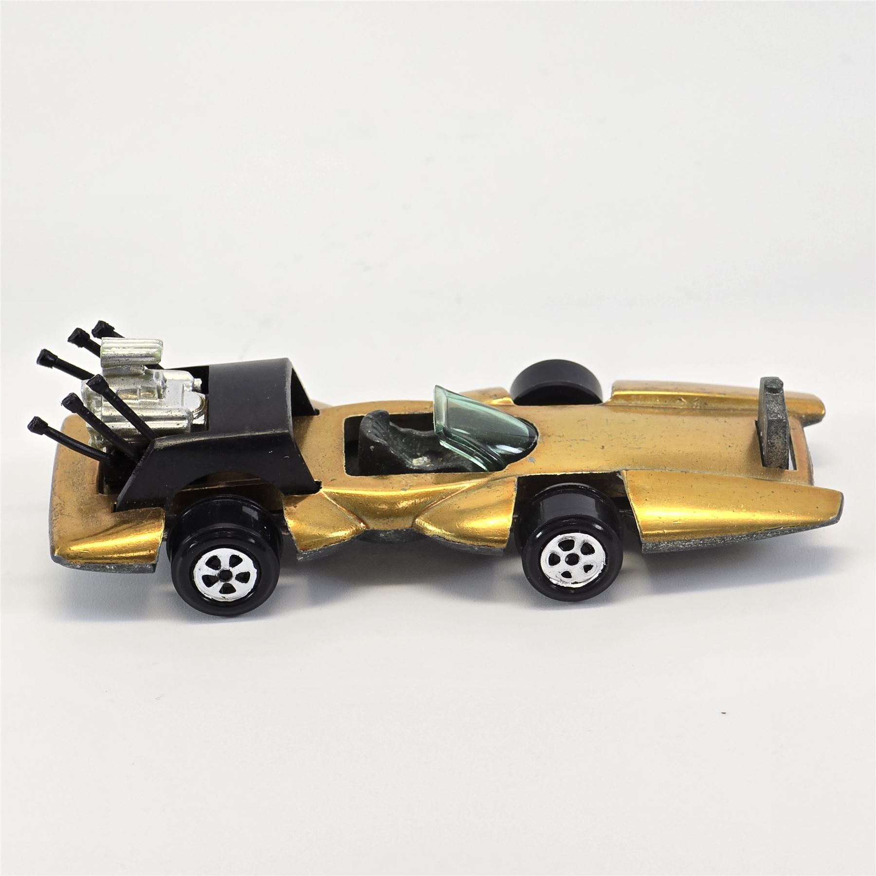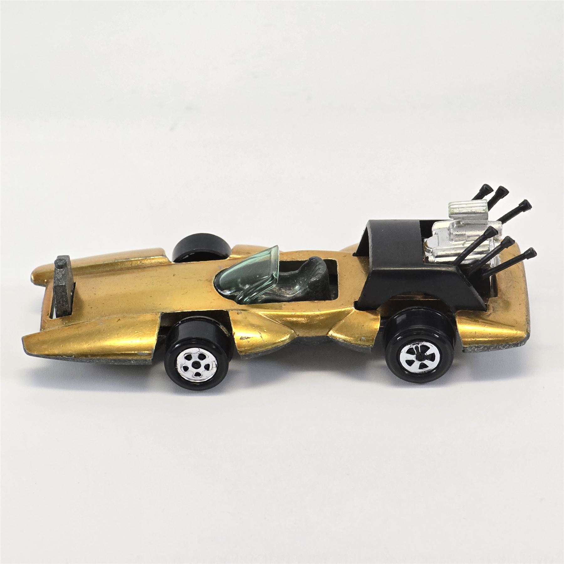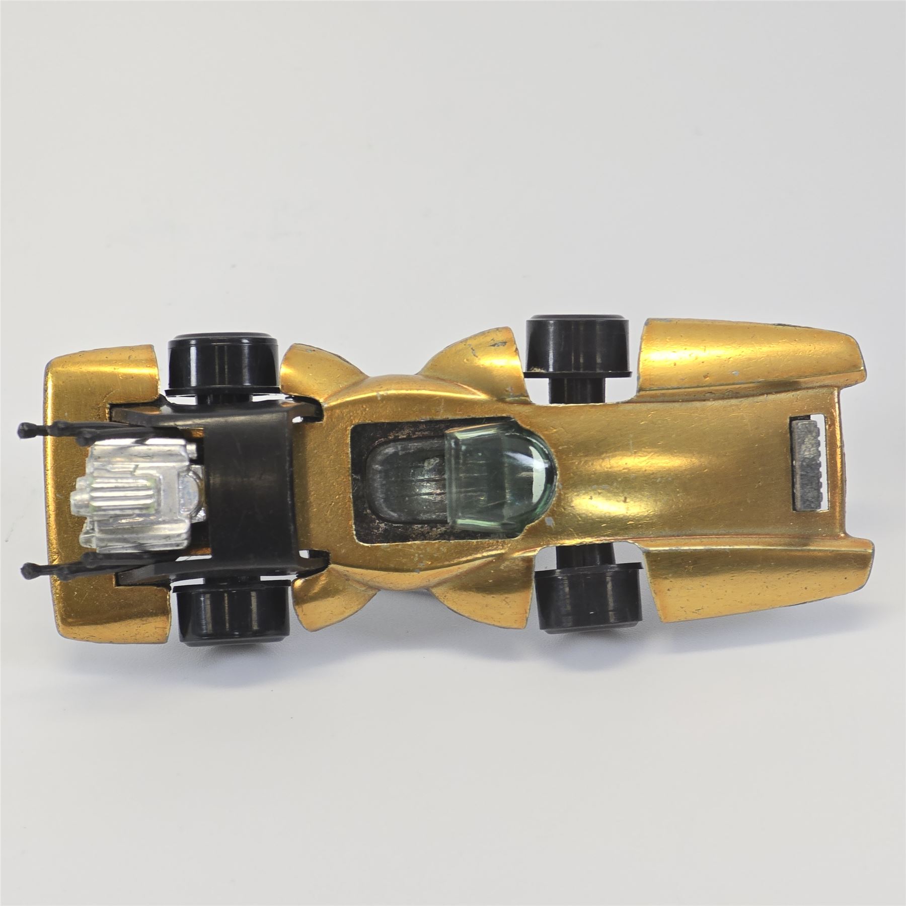 Nice condition overall with a few nicks. Has some toning throughout. Glass is crack free. Motor and exhaust pipes intact. Wheel chrome is clean. Base is lightly tarnished.