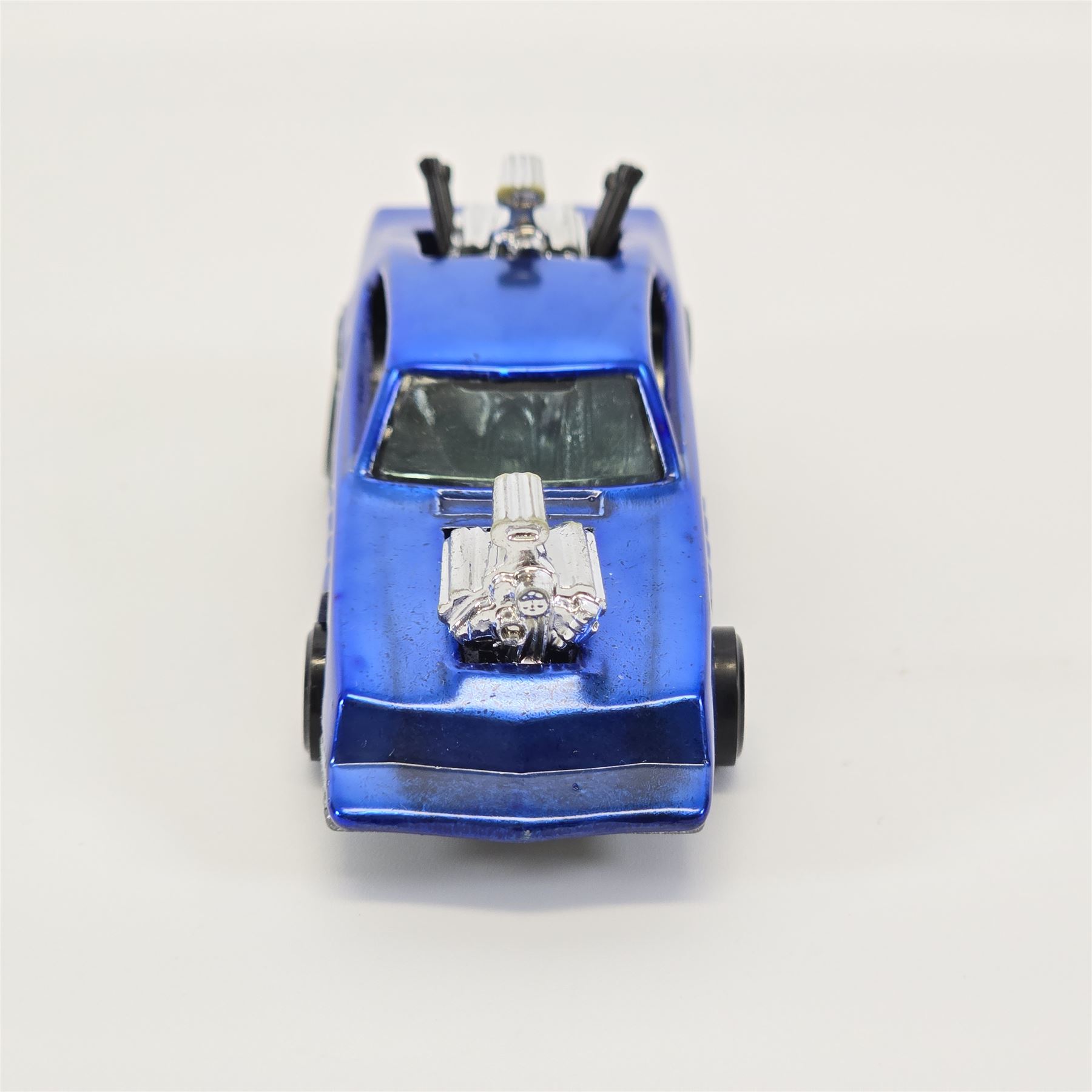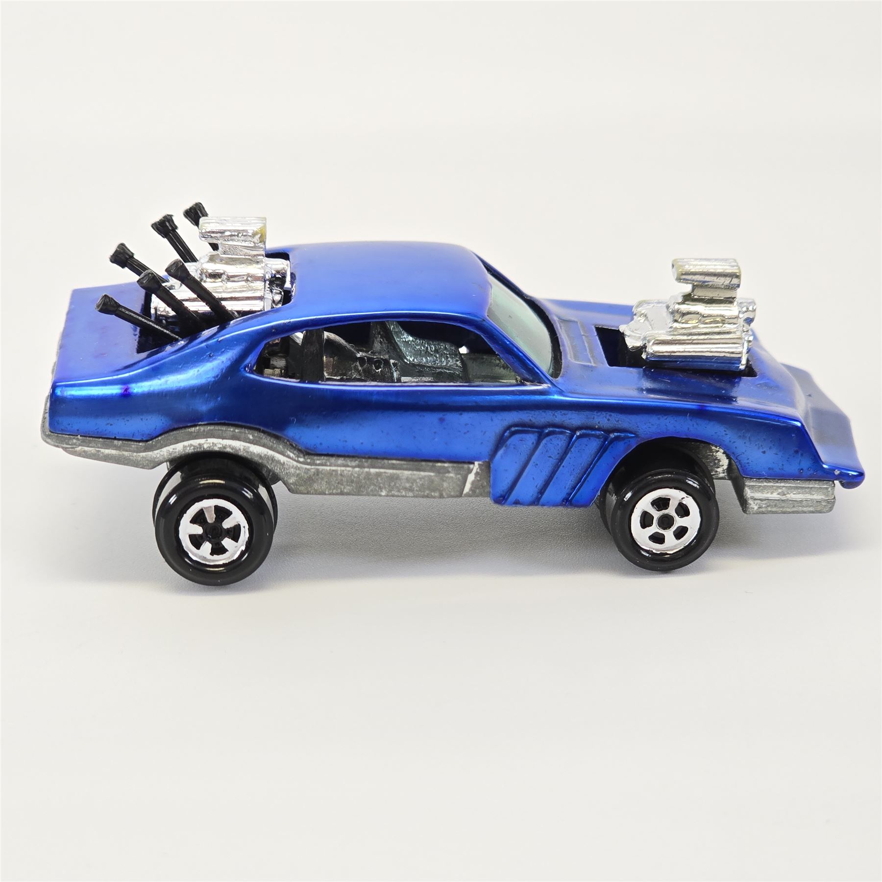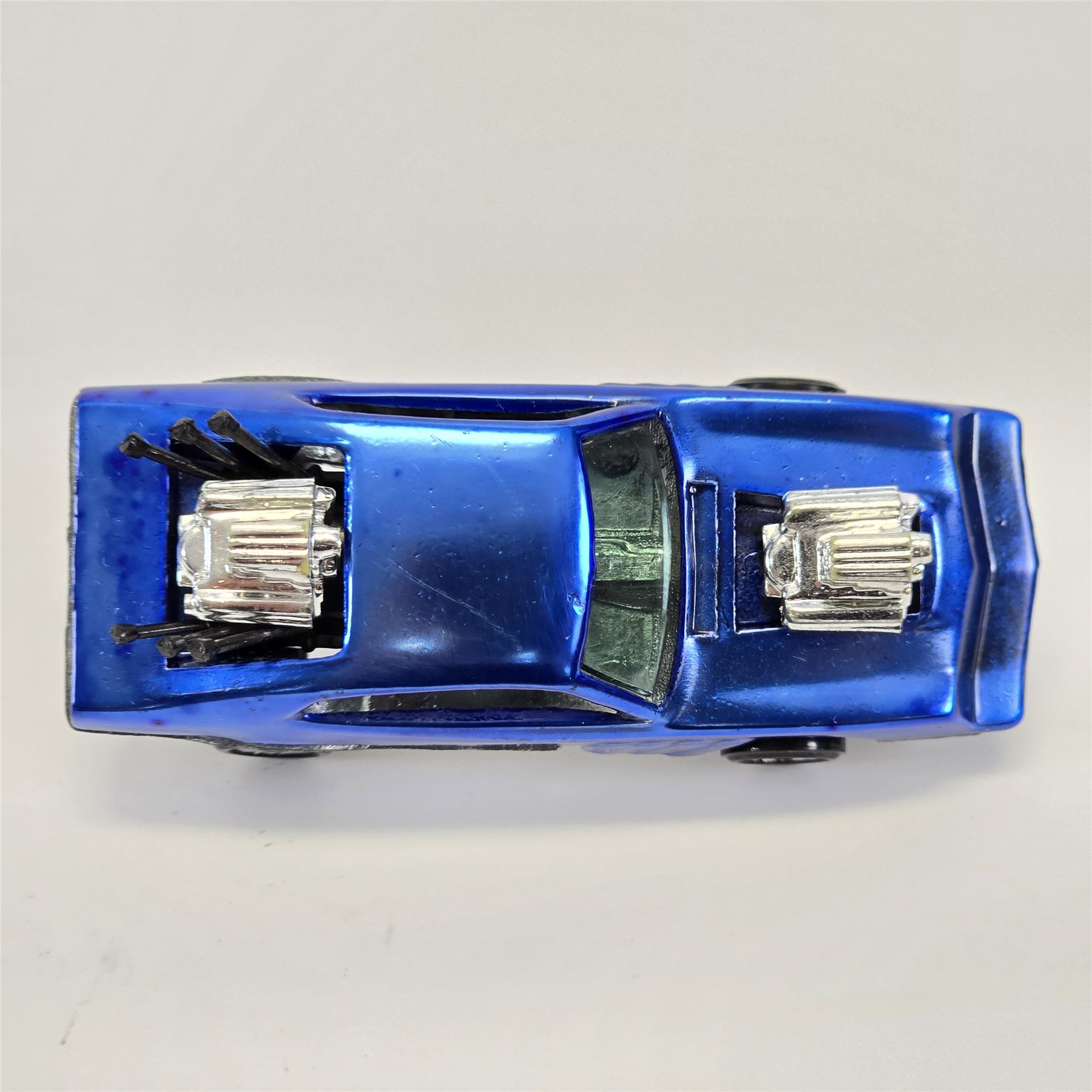 Nice condition overall with a few nicks. Has some toning throughout. Glass is crack free. Motors and exhaust pipes intact. Wheel chrome is clean. Base is lightly tarnished.