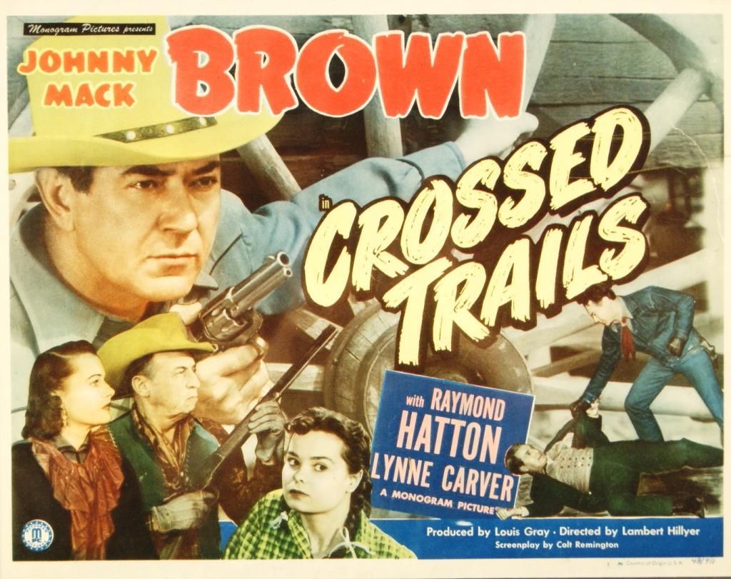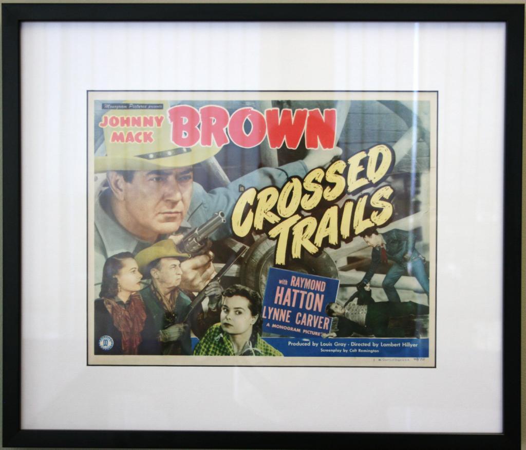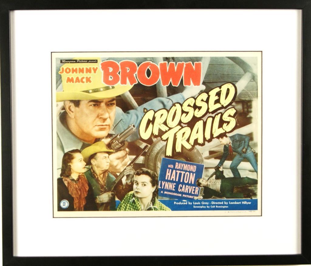 Johnny Mack Brown 'Crossed Trails' 1948 Lobby Card. Very Good - Excellent Condition - Nearly Flawless. Professionally Framed with UV Glass. Linen backed. Museum Quality Vintage Poster. Edition: 48/911