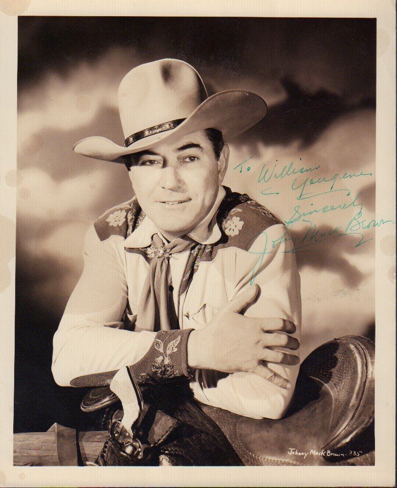 An original sepia toned still signed by the cowboy star to a collector in fountain pen ink in the 40s