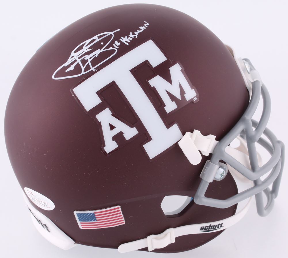Schutt Texas AM custom matte maroon mini-helmet has been hand-signed in white paint pen by Johnny Manziel.
