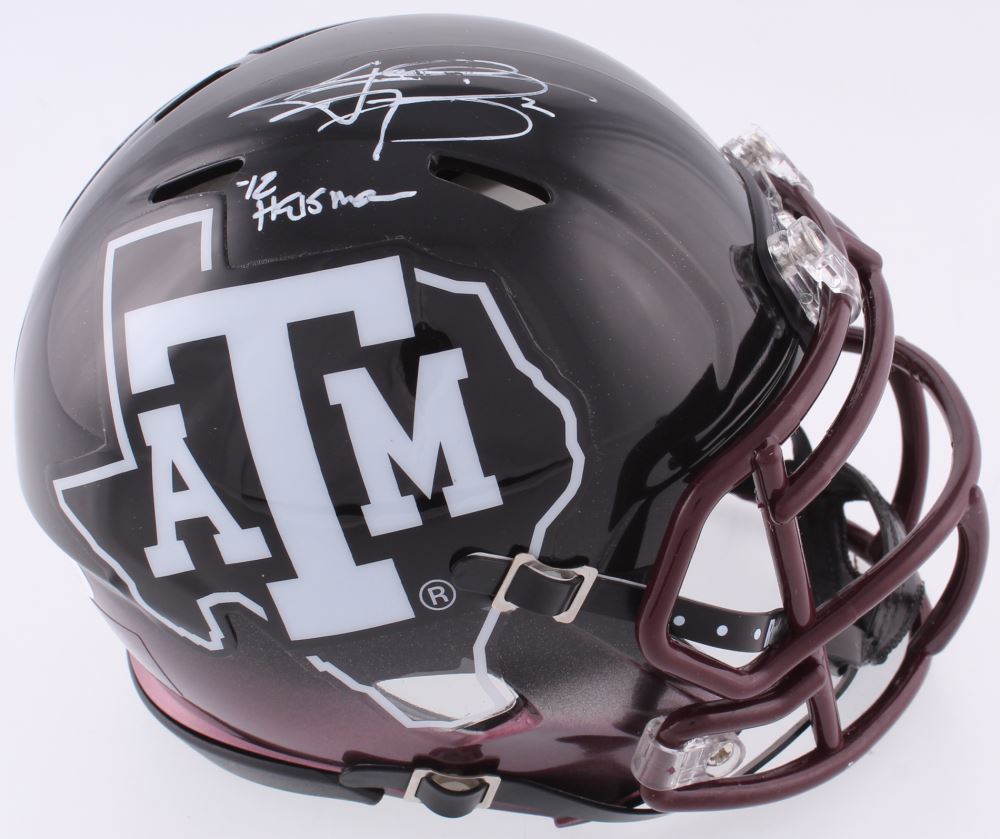Texas AM speed mini-helmet has been hand-signed in white paint pen by Johnny Manziel.