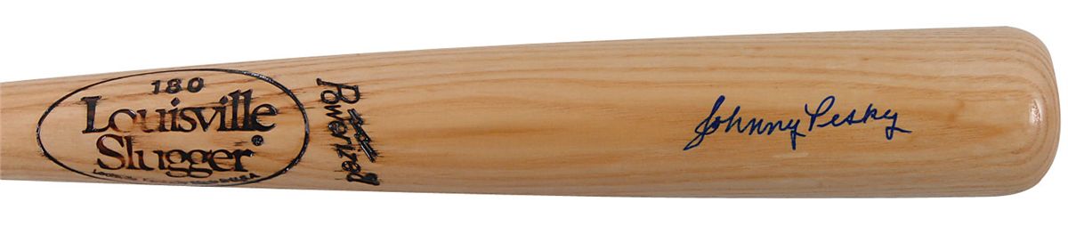 Official Louisville Slugger baseball bat signed in blue felt tip on the barrel. In fine condition, with some marks to the barrel.