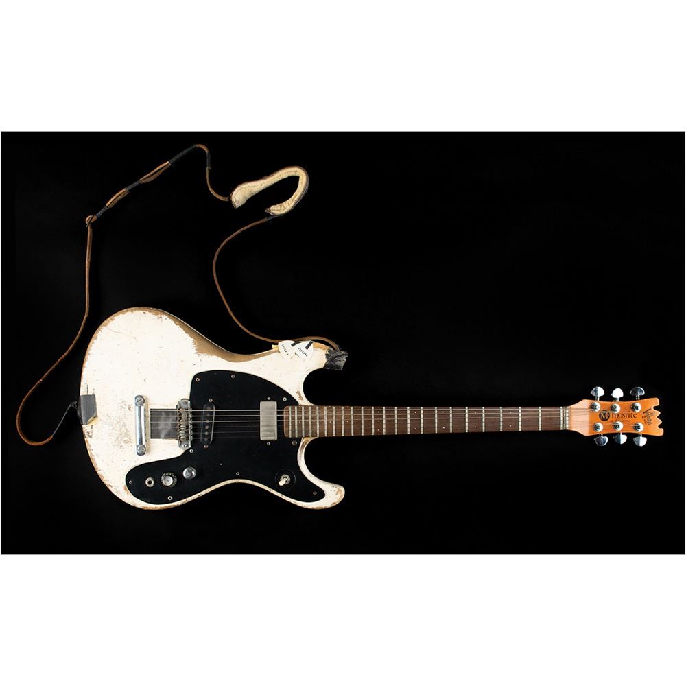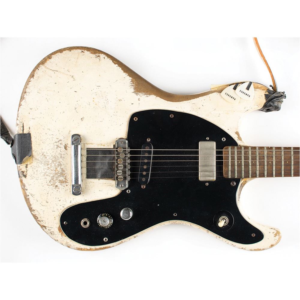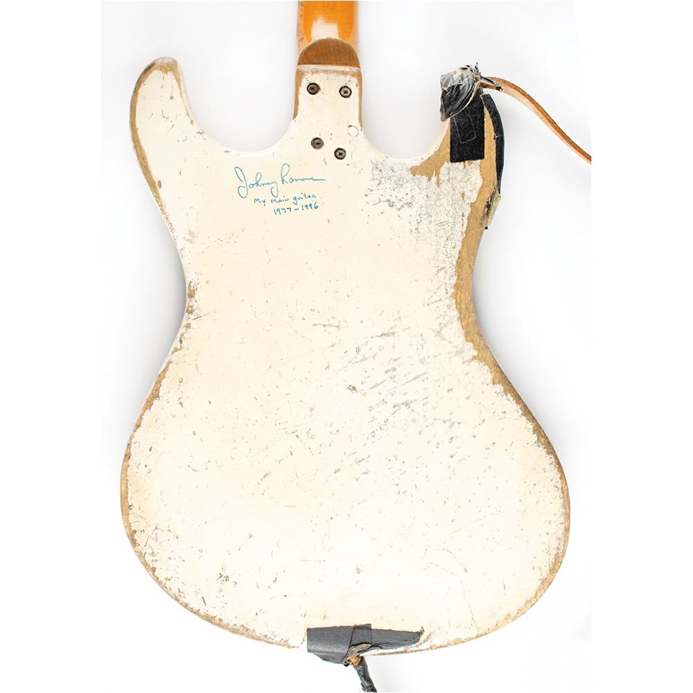 A 1965 Mosrite Ventures II electric guitar personally-owned and -used by Johnny Ramone (John Cummings) for nearly two decades as the guitarist for punk rock legends the Ramones, with the back of the guitar signed in black felt tip, “Johnny Ramone, My Main Guitar, 1977–1996.†Cummings played this guitar at every Ramones performance until his retirement: from November 1977 through August 1996, for a total of approximately 1,985 shows. Additionally, this guitar was used by Cummings for the recording of all 15 Ramones albums (studio and live) from this time period, and can be heard on any live Ramones bootleg from late 1977–1996, of which there are many. It was later displayed at the Rock & Roll Hall of Fame in Cleveland for a number of years. Accompanied by a detailed letter of authenticity from Chris Lamy, a close friend and historian of the Ramones.