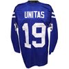This is a new, in stock, Johnny Unitas unsigned Throwback blue unlicensed custom jersey with 3/4 Sleeves with fully stitched twill numbers on the front and back and players name plate, there are NO LOGOS, TAGS, BRAND NAMES or PATCHES ON THIS JERSEY & IS NOT A OFFICAL LICENSED JERSEY, 100% polyester. This is perfect to wear or as a collectible. Size XL (48/50)