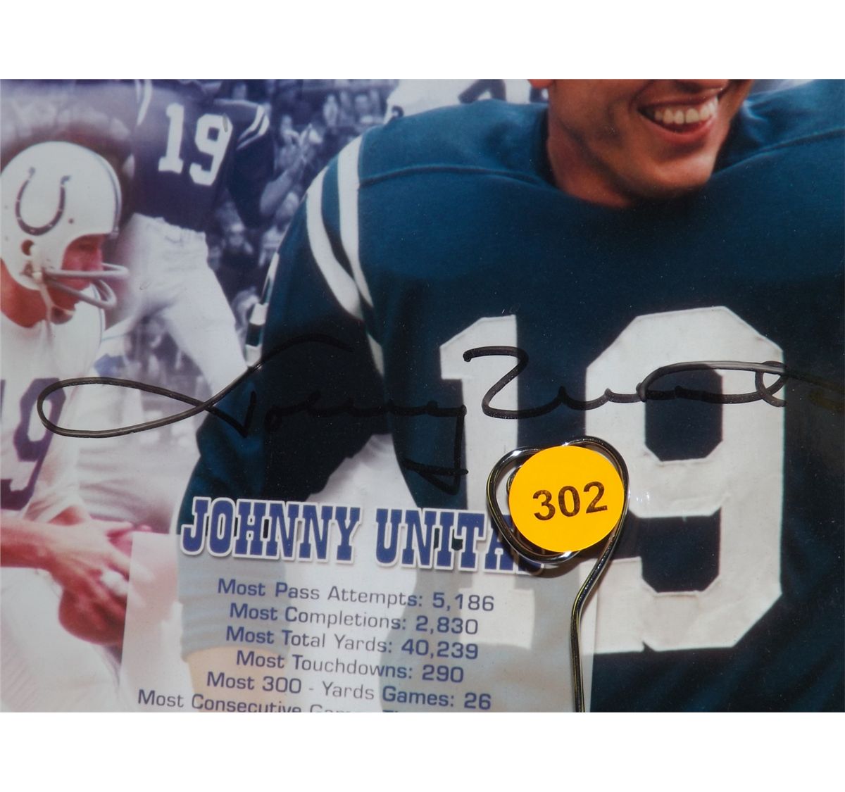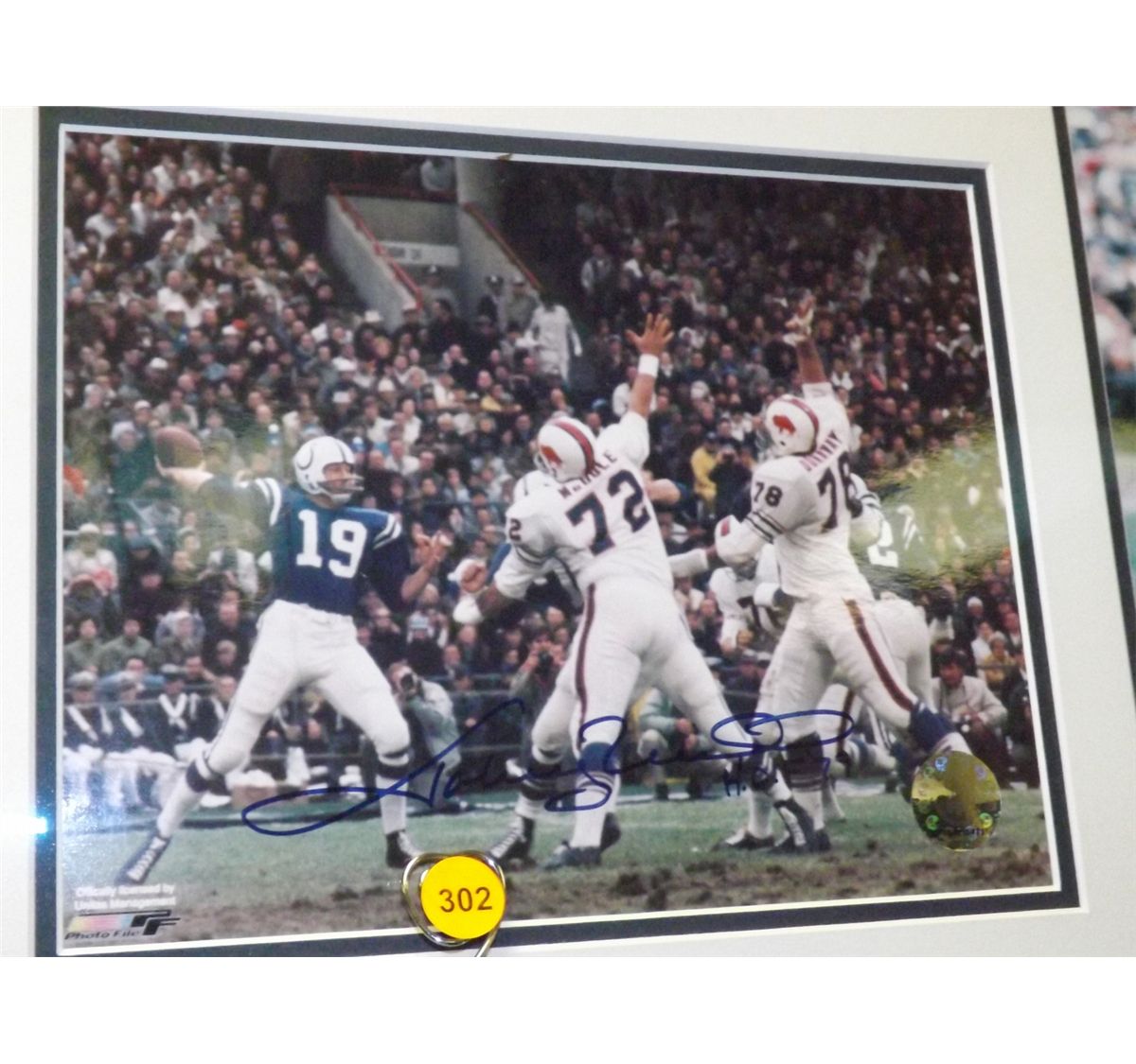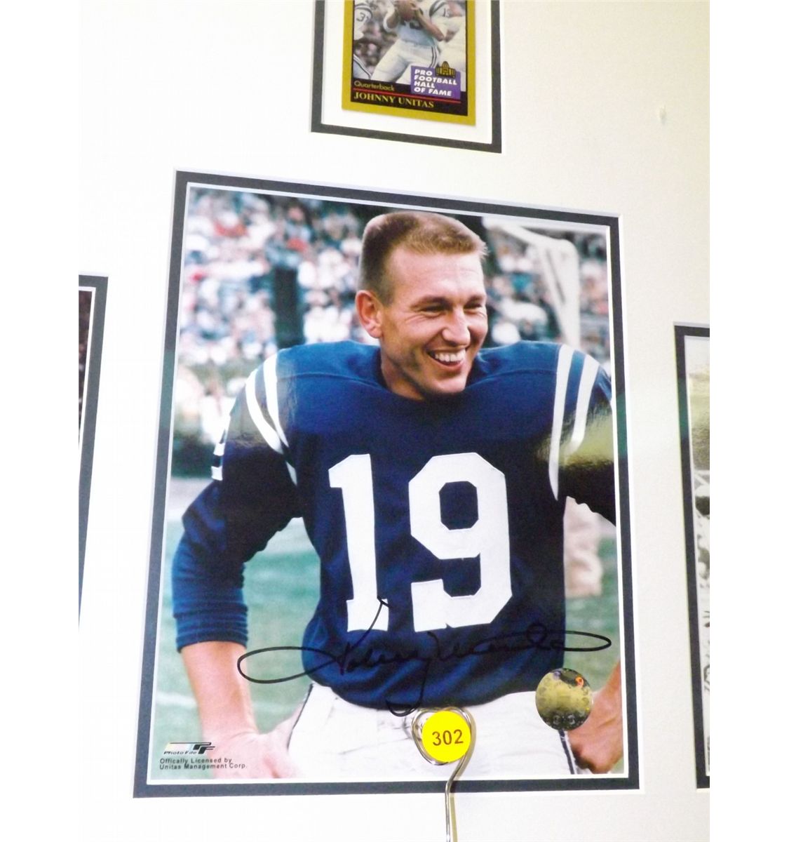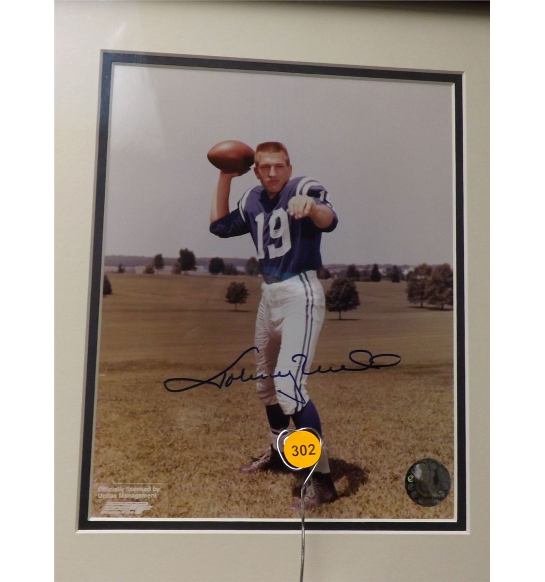 Johnny Unitas Matted and Framed Display. 5 Photos Autographed by Johnny Unitas and One 'NFL Illustrated "Colts Bears Baltimore Memorial Stadium Dec. 5th 1965"' Program Autographed by Johnny Unitas and Raymond Berry. Appraised or estimated retail value $7000. COAs by Signature Dreams and My Favorite Players. All Sales Final. Please see terms and conditions of auction.