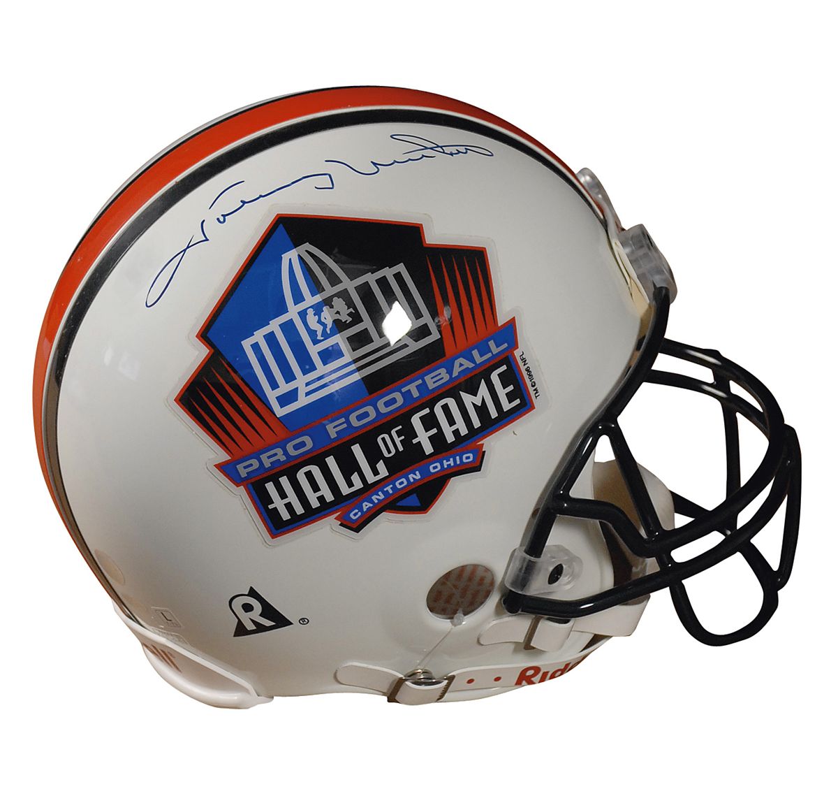 Official Riddell Football Hall of Fame commemorative football helmet signed in black felt tip on the side. In very fine condition.