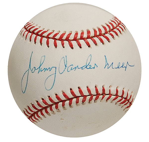 Official Rawlings National League baseball signed in blue ballpoint on the sweet spot. In fine condition, with a few light scuffs to side panels.