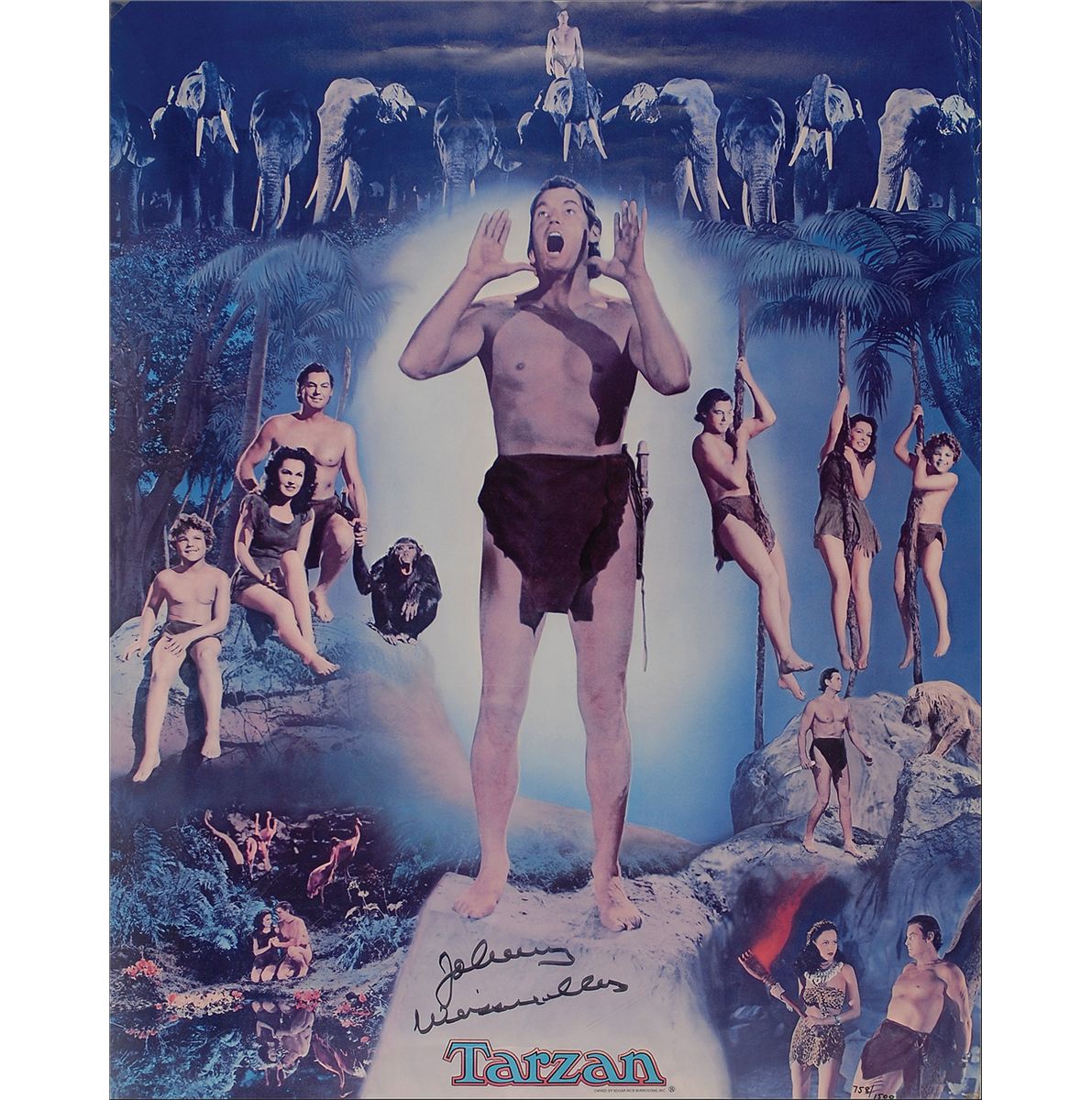 Color limited edition 24 x 30 print featuring a great collage of Tarzan scenes, numbered #758/1500, signed in black felt tip. In very good condition, with scattered horizontal creases and edge dings.