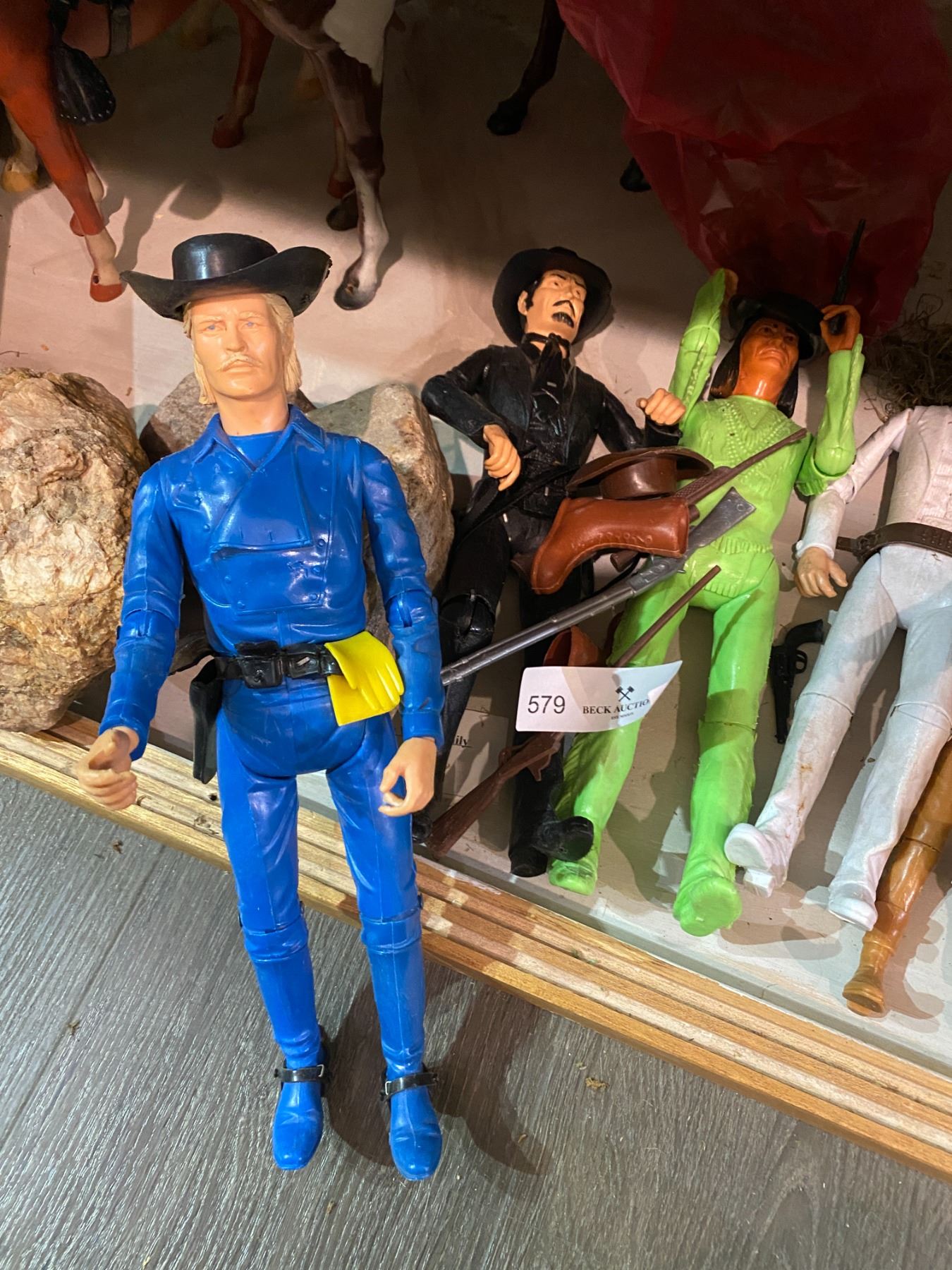 Johnny West Western Display - 2 Cowboys, Indian in Green