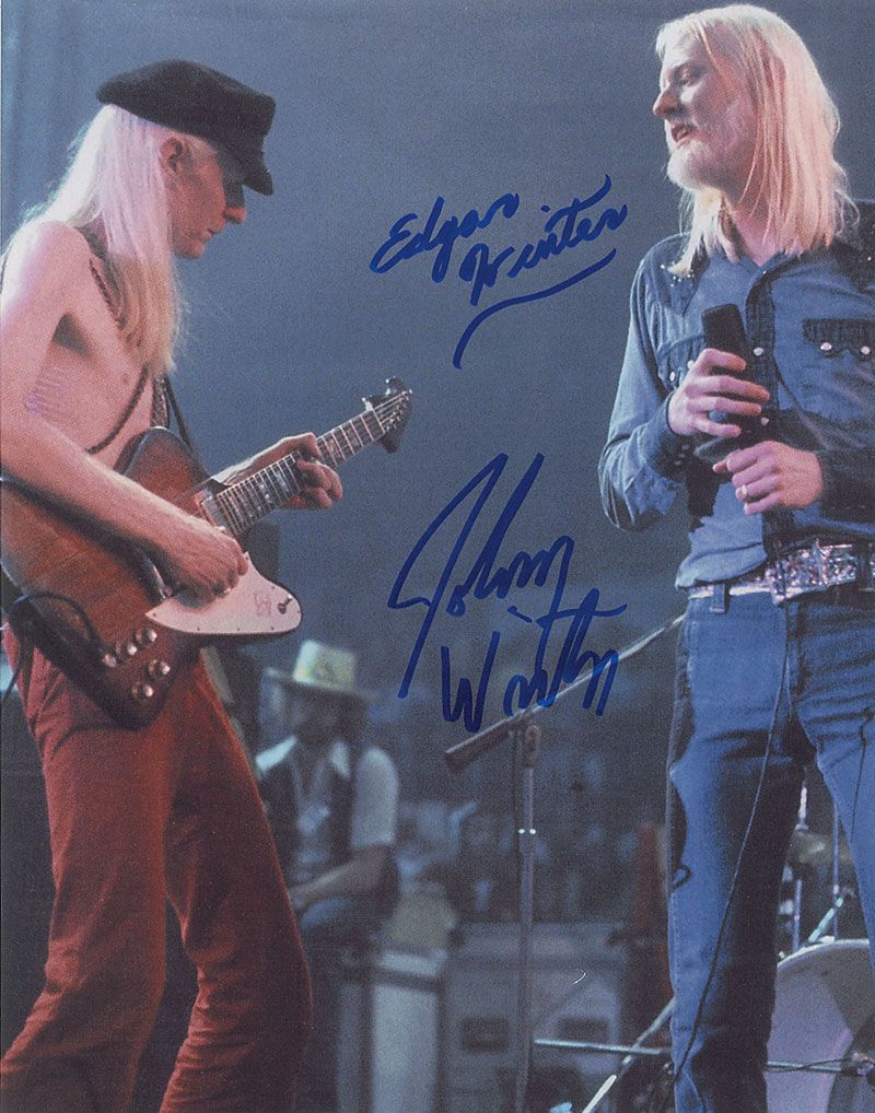 Color glossy 11 x 14 photo the brothers on stage, signed in blue felt tip by both. In fine condition.