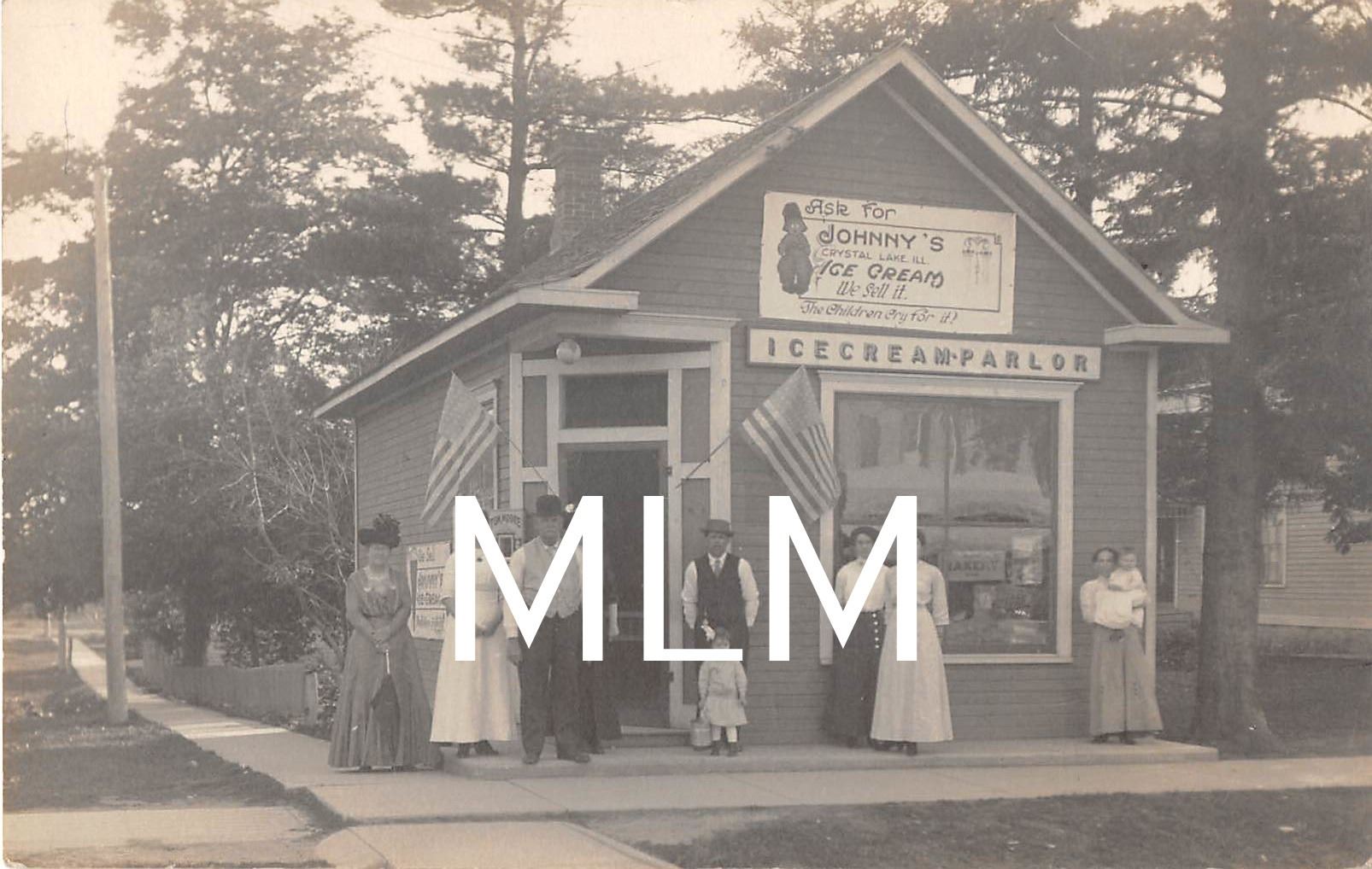 Johnny's Ice Cream Parlor Front Crystal Lake, Illinois Photo Postcard