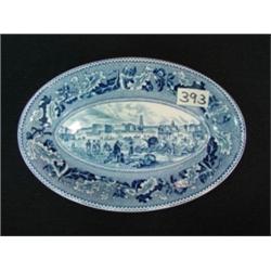 Historic America Johnson Bros relish dish. Made in England. Am Kai Levee, New Orleans, with oak leaf and acorn border. 5 1/2" X 8 1/4" oval with stick marks from kiln. Ex cond.