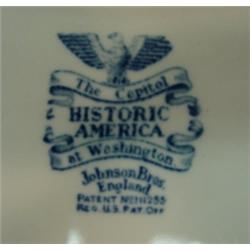 Historic America Johnson Bros square plate. Made in England. The Capitol at Washington with oak leaf and acorn border. 7 7/8 " with stick marks from kiln. Exc cond.