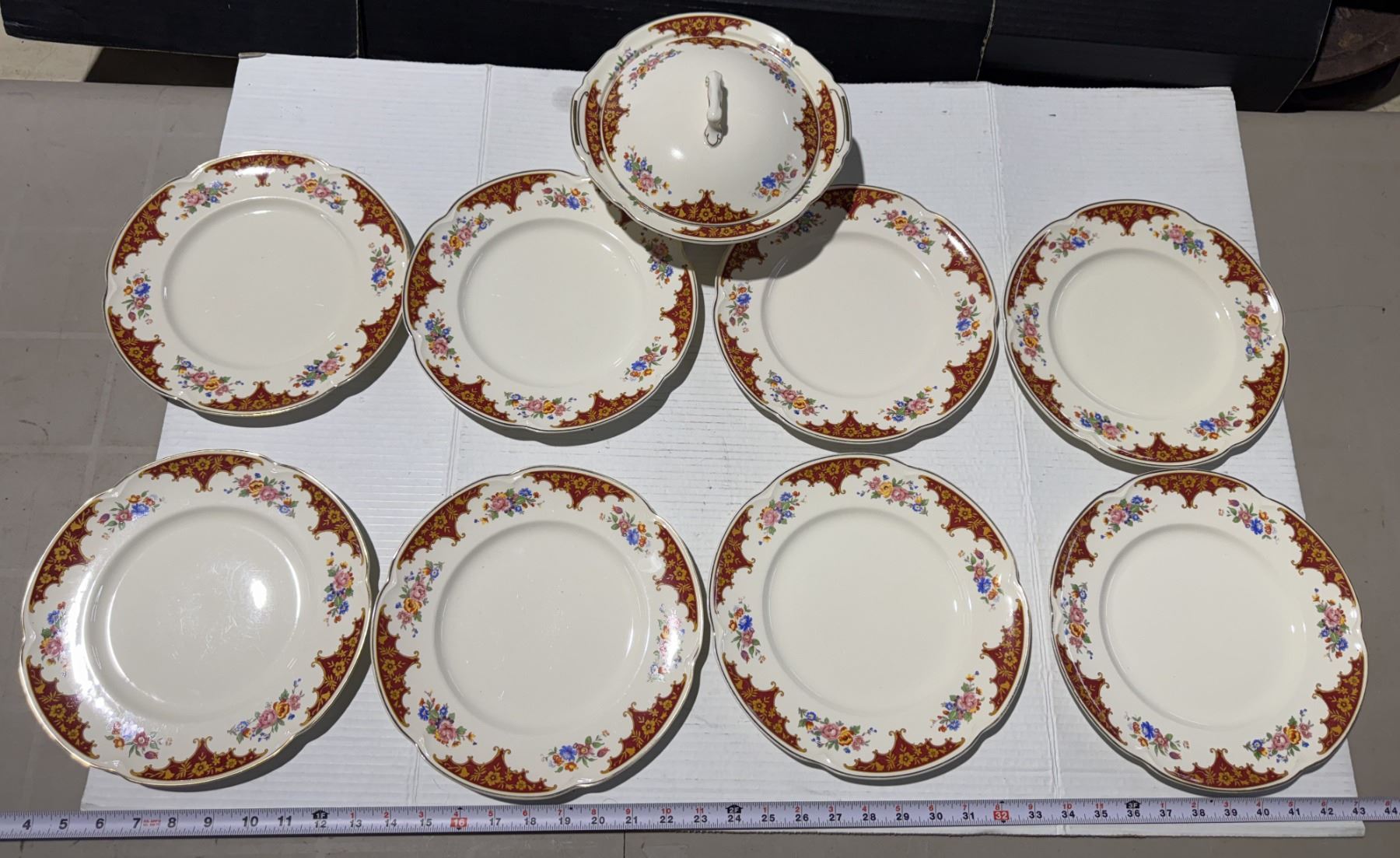 Johnson Brothers Pareek Dinner Plates and Serving Bowl.