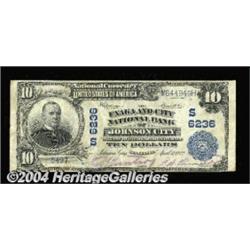 Johnson City, TN - $10 1902 Plain Back Fr. 635 The Unaka & City NB Ch. # (S)6236A bright and attractive large size Ten with bold purple stamped signatures. <BR><BR><B>Important notice:</B> Heritage usually auctions material at the rate of 200-250 lots per hour. On some occasions eBay Live bid software or the Internet may not be able to keep up with the pace of the auction. We recommend placing a realistic absentee bid now as insurance to avoid disappointment. Occasionally the auctioneer may eliminate or reject an eBay Live bid, and the auctioneer may also reopen a lot after the close of the eBay live bidding (usually because we missed an audience bid), and may reject your bid even if it shows you as the winning bidder. By bidding via eBay Live, you agree that Heritage may award the lot to another bidder at its sole discretion under the circumstances described above or any other reasonable circumstances. Since eBay bids are not shown to us until we open the lot on the floor, we treat those bids just like floor bids. In most cases the floor responds before the eBay bid is presented to us, due to Internet lag time, so for consistency we have made it a policy that floor bids are always considered first over tie eBay live bids. Also please note that all Heritage lots purchased through eBay Live carry a 20% Buyer's Premium. Please make sure you read the Terms and Conditions before you bid. <BR><BR><B>IMPORTANT ANNOUNCEMENT ABOUT RESERVES:</B> Heritage now divulges all reserves on its web site 7 days before every auction. If you want to know whether the reserve on this lot has been met, and if not, what the reserve amount is, please visit this lot page on the HeritageCoin.com web site, or email: bid@HeritageGalleries.com