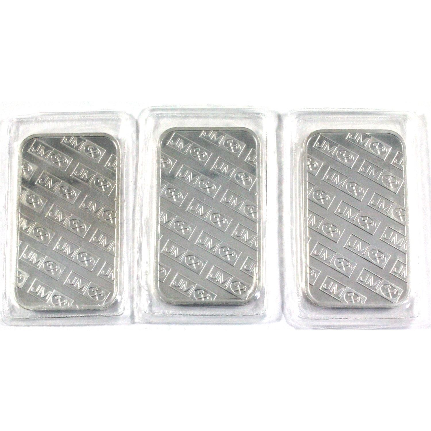 Johnson Matthey 1oz .999 Fine Silver Bars in Sealed Mint Plastic - 2 with Consecutive Serial Numbers A565573-74 and 79. 3pcs (TAX Exempt)