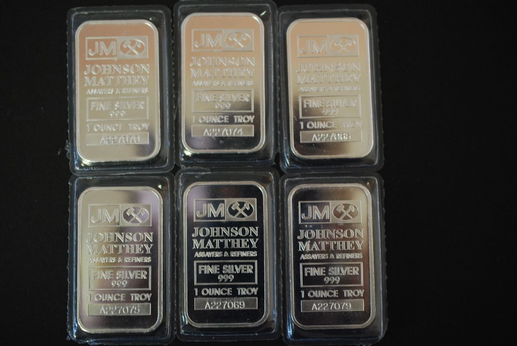 Johnson Matthey Assayers & Refiners Silver Ingot; .999 Fine Silver 1 Oz.; Lot of 5