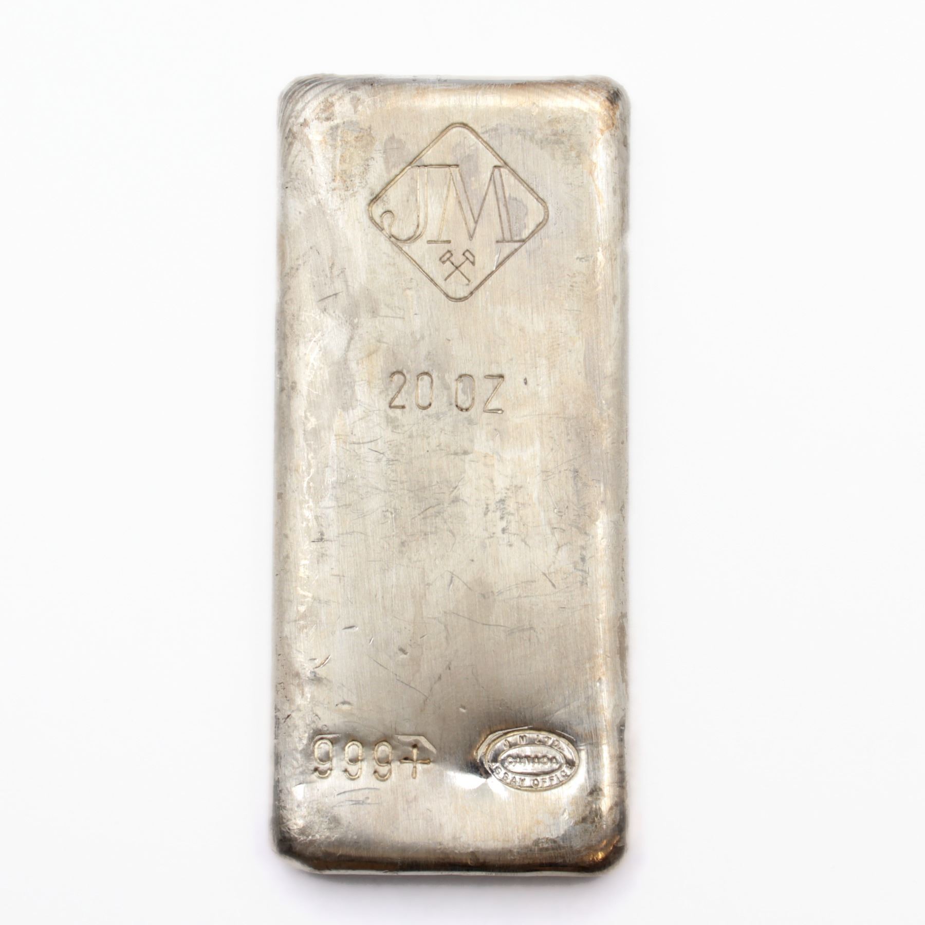 Johnson Matthey Canada 20oz Fine Silver Bar with 'Large Logo' (Tax Exempt)