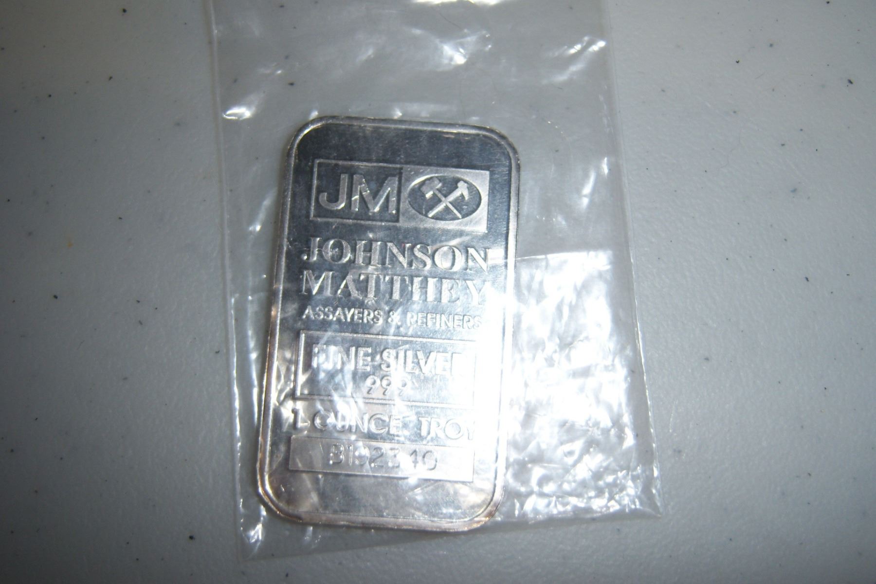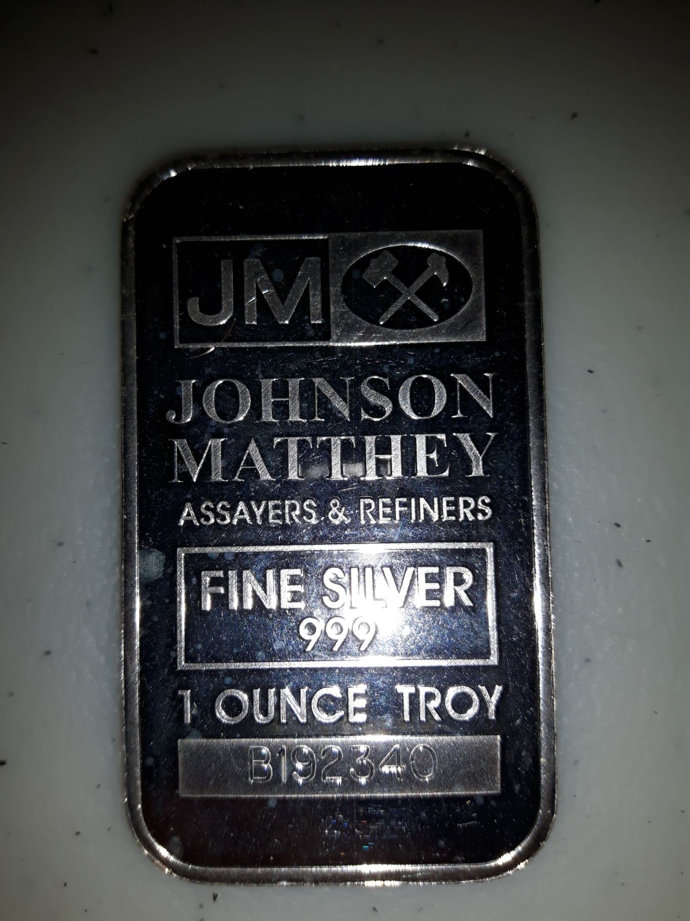 Johnson Matthey one Troy ounce .999 Silver Bar - serial numbered