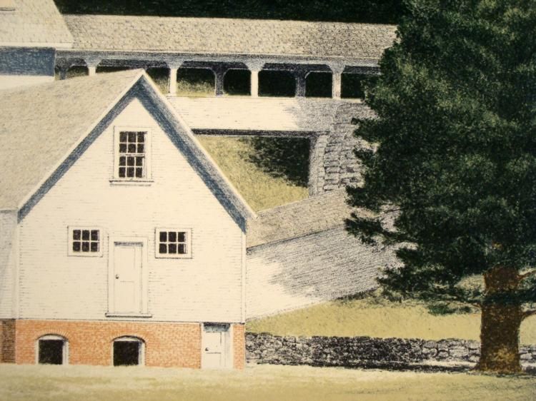 Who wouldn't want to live at this gorgeous resort-home??Artist: Mel Hunter Title: The Johnson Place Medium: Print on Paper Signature: in pencil, lower right Edition: 10/100 Date: 1974 Size: 24" x 30" Condition: Excellent BiographyPrior to making fine art