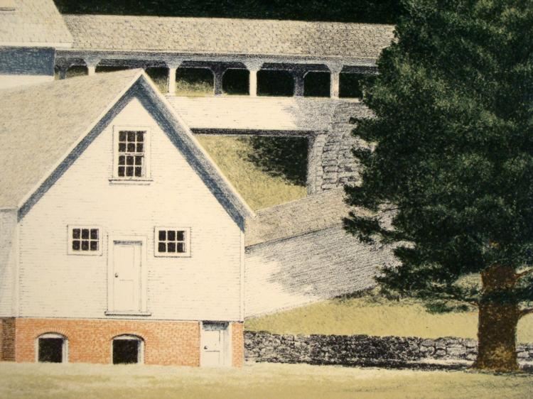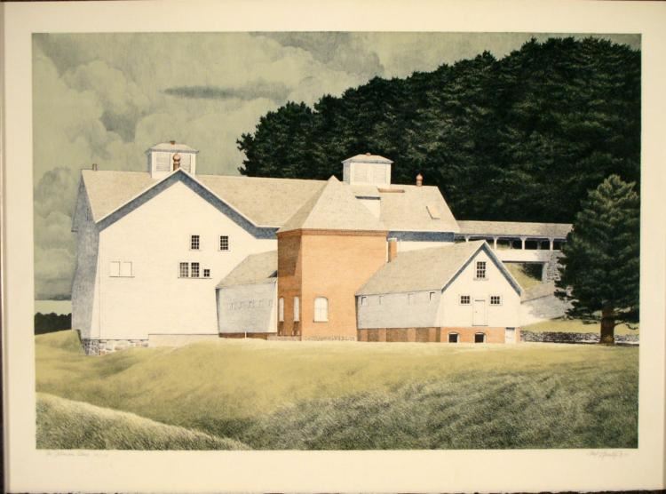 Who wouldn't want to live at this gorgeous resort-home??Artist: Mel Hunter Title: The Johnson Place Medium: Print on Paper Signature: in pencil, lower right Edition: 10/100 Date: 1974 Size: 24" x 30" Condition: Excellent BiographyPrior to making fine art prints, Hunter illustrated science books while living in New York City. During the summer of 1967, he relocated to southern Vermont, where he established his home and studio in a farmhouse high on a forested hill. At that point, he began depicting the land, animals, birds and changing seasons of his rural, semi-wild environment.