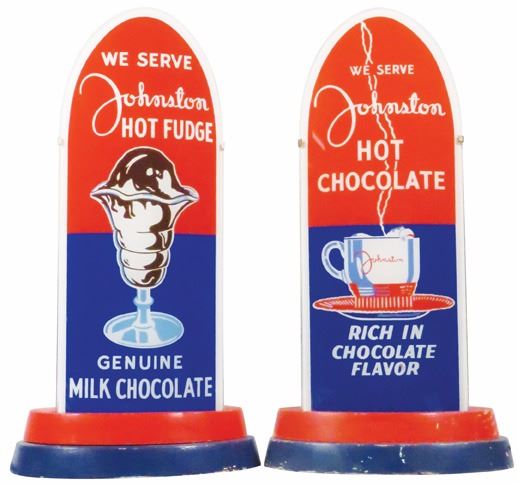 Johnston Counter Top Light Up Displays. For Hot Fudge and Hot Chocolate. Excellent working condition. 7 X 13 1/2 X 4 inches.