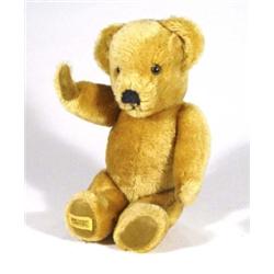 Jointed Merrythought golden teddy bear, label to foot, 40cm high