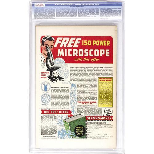 50. Since we cannot examine encapsulated notes or comics, they are sold "as is" without our grading opinion, and may not be returned for any reason. Auctioneer shall not be liable for any patent or latent defect or controversy pertaining to or arising from any encapsulated collectible. In any such instance, purchaser's remedy, if any, shall be solely against the service certifying the collectible.