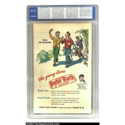Joker Comics #28 Mile High pedigree (Timely, 1947) CGC NM+ 9.6 Off-white to white pages. Millie the Model makes her first appearance in this title, joining longtime headliner Tessie the Typist in a blonde on blonde confrontation we can only hope will turn into a catfight! Must have been some good reading, because copies seem to be virtually all read up! This wondrous copy is the only one of issue #28 that CGC has certified to date. Overstreet 2003 NM 9.4 value = $90. Important notice: Heritage usually auctions material at the rate of 200-250 lots per hour. On some occasions eBay Live bid software or the Internet may not be able to keep up with the pace of the auction. We recommend placing a realistic absentee bid now as insurance to avoid disappointment. Occasionally the auctioneer may eliminate or reject an eBay Live bid, and the auctioneer may also reopen a lot after the close of the eBay live bidding (usually because we missed an audience bid), and may reject your bid even if it shows you as the winning bidder. By bidding via eBay Live, you agree that Heritage may award the lot to another bidder at its sole discretion under the circumstances described above or any other reasonable circumstances. Also please note that all Heritage lots purchased through eBay Live carry a 20% Buyer's Premium. Please make sure you read the Terms and Conditions before you bid.