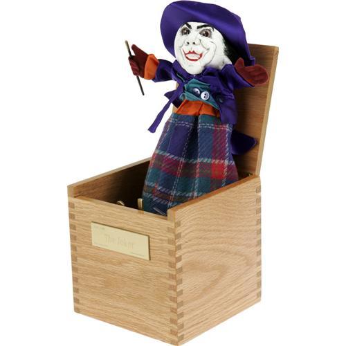 <B>"Joker" Jack in the Box Limited Edition, 10/495 (Stabur Graphics, 1989).</B></I> Tim Burton's 1989 "Batman" motion picture inspired a wide variety of related merchandise. Here's one of the more unusual items: a nicely crafted jack-in-the-box, featuring the face of the famous Jack from the film, Jack Nicholson as the Joker. Nicholson's Joker laugh is used for our purple-hatted jack, which sits inside an attractive wooden box, complete with a brass plaque numbered 010/495. The Jack figure has been signed on the backside by designer Cheryl Wilson, who has numbered this piece 20/500. Complete with batteries, ready to install, inside the mechanism, and a felt bag. These "magnificent toys" are incredibly scarce today!<BR><BR><b>Shipping:</b> Other (oversized items, group lo (<a target="_blank" href="http://www.heritageauctions.com/common/shipping.php">view shipping information</a>)