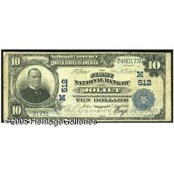 <B>Joliet, IL</B></I> - $10 1902 Plain Back Fr. 624 <B>The First NB</B></I> Ch. # (M)512<BR>The bank officers' signatures are slightly doubled. <B>Fine.</B></I> Lot:15035