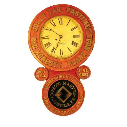 Jolly Tar, Pastime Clock, Edw. P. Baird and Co. Mfg. Compliments of John Finzer and Bros. Tobacco Mfg., Louisville, KY. Excellent original condition. 18 1/2 X 30 1/2 inches.