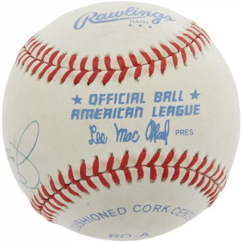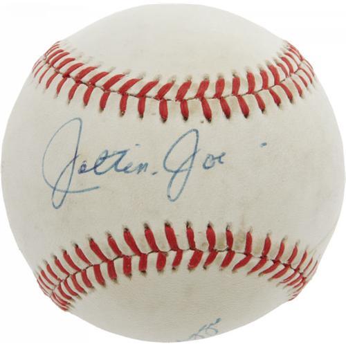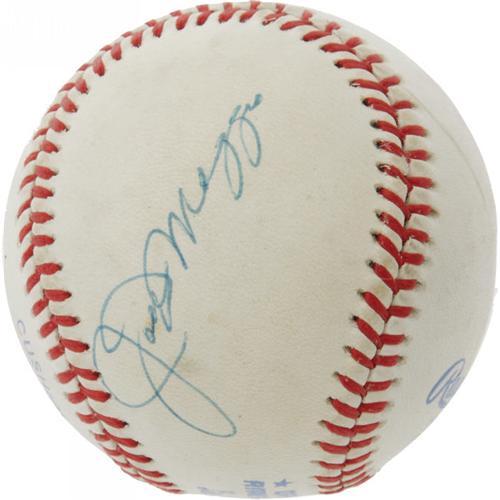 <B>"Joltin' Joe" DiMaggio Single Signed Baseball.</B></I> Unique OAL (MacPhail) ball offers something a little different for the autograph collector that wants to set his collection apart. Perfect blue ink in the Yankee great's hand spells "Joltin' Joe," which he then follows up with a standard "Joe DiMaggio" side panel autograph in similar 10/10 quality. The ball shows mild toning and a bit of handling wear, but nothing that diminishes eye appeal. One of the coolest DiMaggio singles on the market. <I>LOA from PSA/DNA.</B></I> <BR><BR><B>Important notice:</B> Heritage usually auctions material at the rate of 200-250 lots per hour. On some occasions eBay Live bid software or the Internet may not be able to keep up with the pace of the auction. We recommend placing a realistic absentee bid now as insurance to avoid disappointment. Occasionally the auctioneer may eliminate or reject an eBay Live bid, and the auctioneer may also reopen a lot after the close of the eBay live bidding (usually because we missed an audience bid), and may reject your bid even if it shows you as the winning bidder. By bidding via eBay Live, you agree that Heritage may award the lot to another bidder at its sole discretion under the circumstances described above or any other reasonable circumstances. Since eBay bids are not shown to us until we open the lot on the floor, we treat those bids just like floor bids. In most cases the floor responds before the eBay bid is presented to us, due to Internet lag time, so for consistency we have made it a policy that floor bids are always considered first over tie eBay live bids. Also please note that all Heritage lots purchased through eBay Live carry a 22.5% Buyer's Premium. Please make sure you read the Terms and Conditions before you bid. This lot is being auctioned in conjunction with a live floor auction by Heritage Galleries & Auctioneers. All final auction and invoice information will be supplied by Heritage Galleries & Auctioneers, and all other information should be considered preliminary. Lot:19026 <BR><BR><B>Winning Notification and Billing:</B> After the FINAL session in this auction is complete, Heritage will send e-mail and snail mail invoices. This process normally takes several days. All final auction and invoice information will be supplied by Heritage Galleries & Auctioneers, and all other information should be considered preliminary. <BR><BR>This auction will be conducted on a live auction floor and over the Internet through eBay Live. If you choose to place an absentee bid, please take a moment to <font color='#0000ff'><u><a href='http://pages.ebay.com/liveauctions/help/before/laabsentee.html'>learn how eBay Live absentee bidding works</a></u></font><font color='#000000'>
