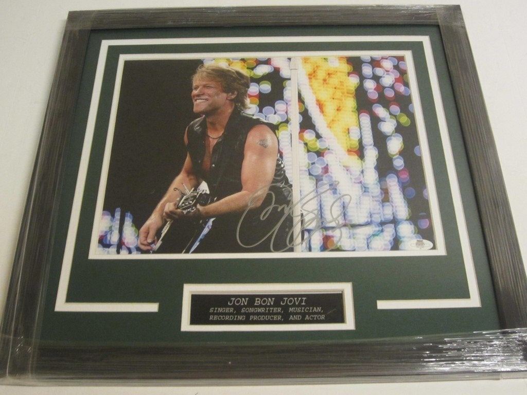 Bon Jovi signed 11x14 inch photo. Framed, with coa.