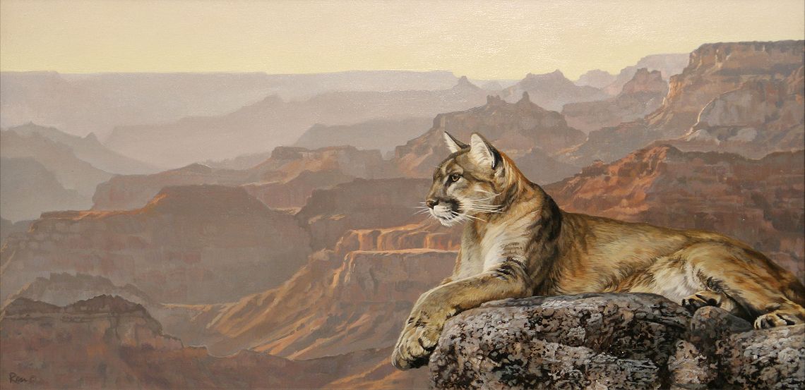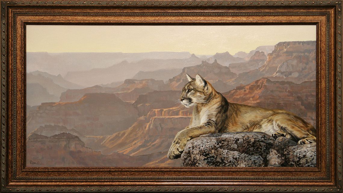 Jon Ren (b. 1970). Vantage Point. 12" x 24" acrylic on board. Signed lower left: Ren © . (est. $1,500-2,500). CONDITION REPORTS: www.auctioninsantafe.com/docs/cr2012.pdf